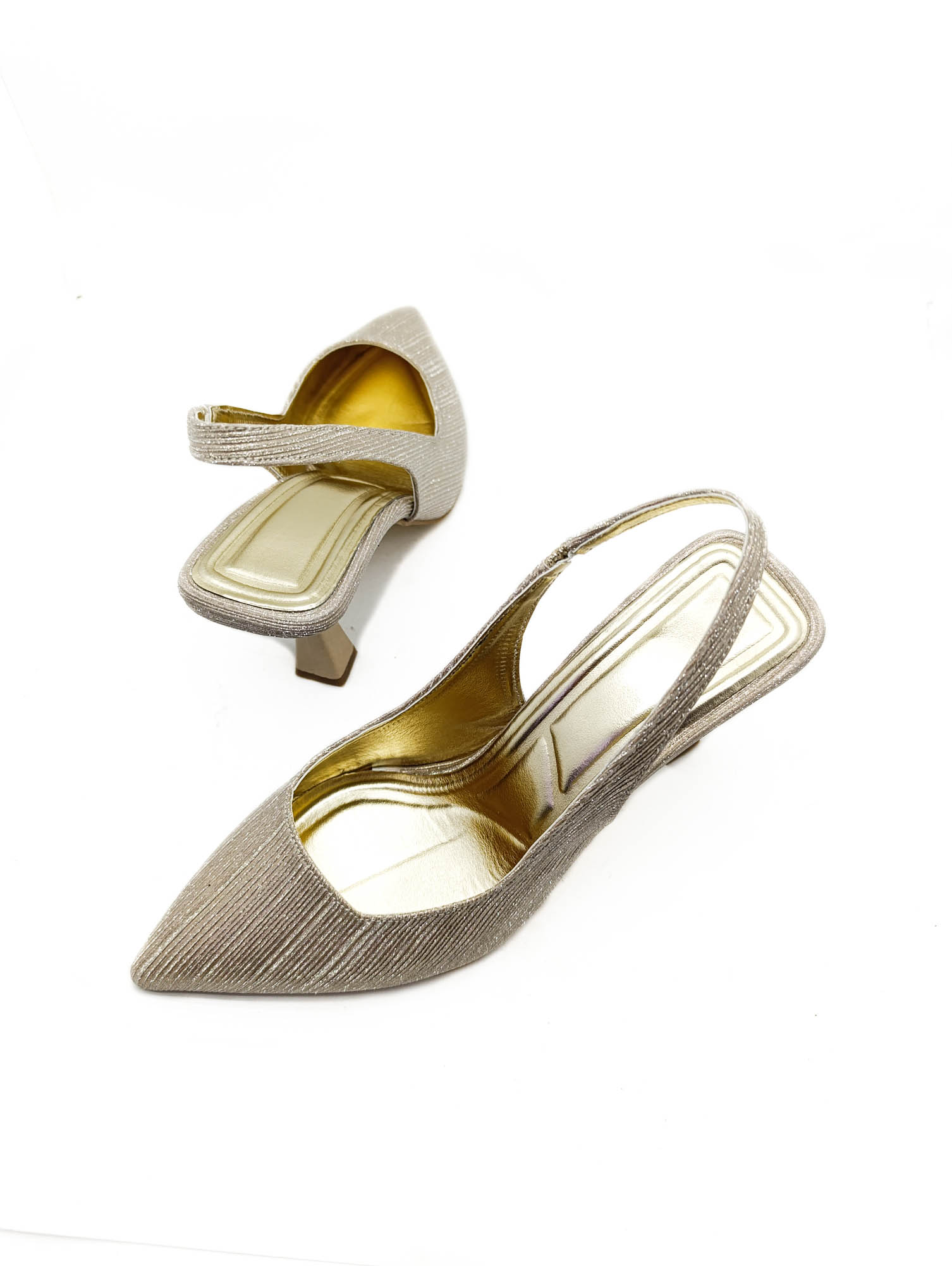 (Bono)Altın Renk Simli Kadeh Topuk Kadın Abiye Ayakkabı