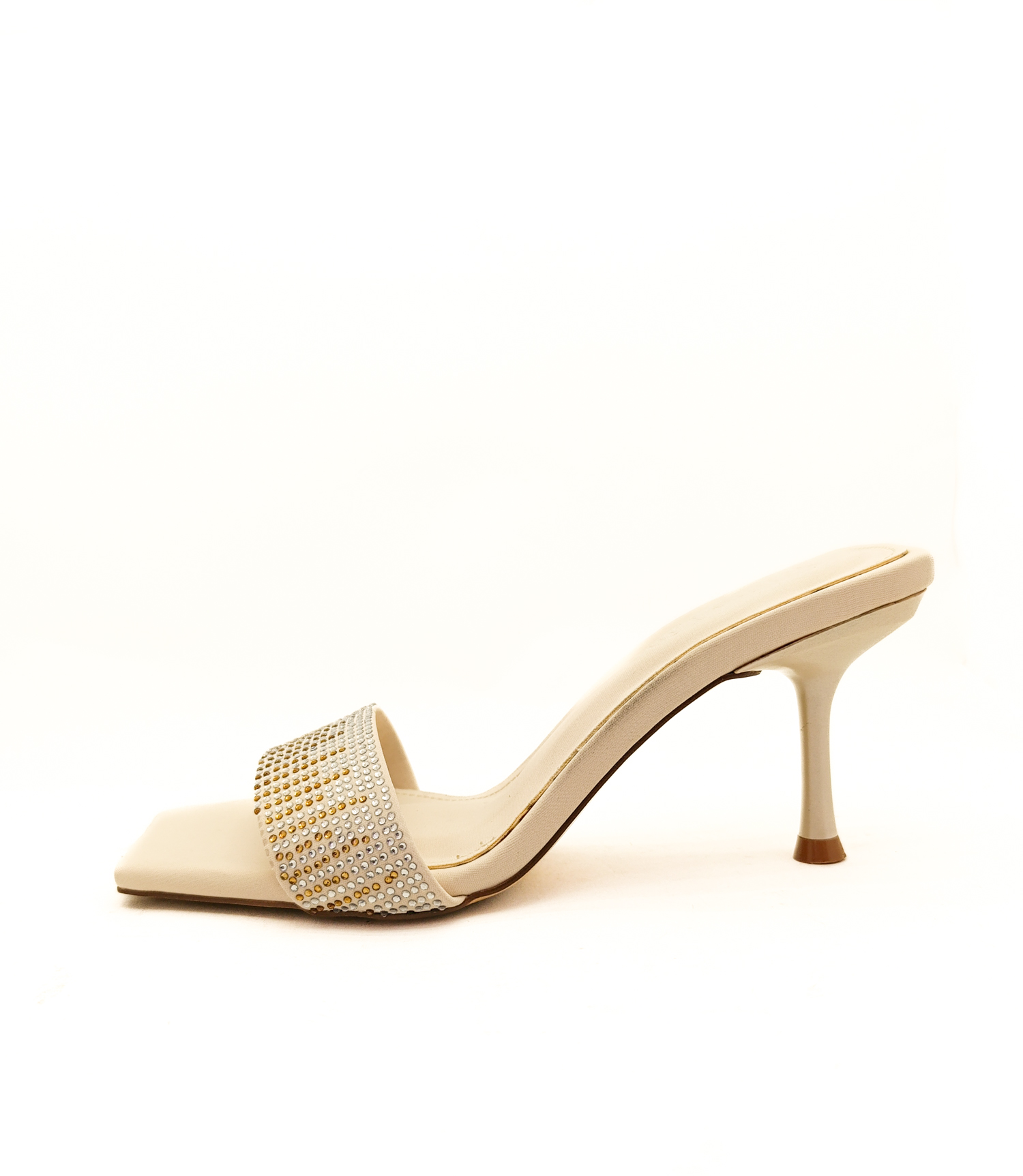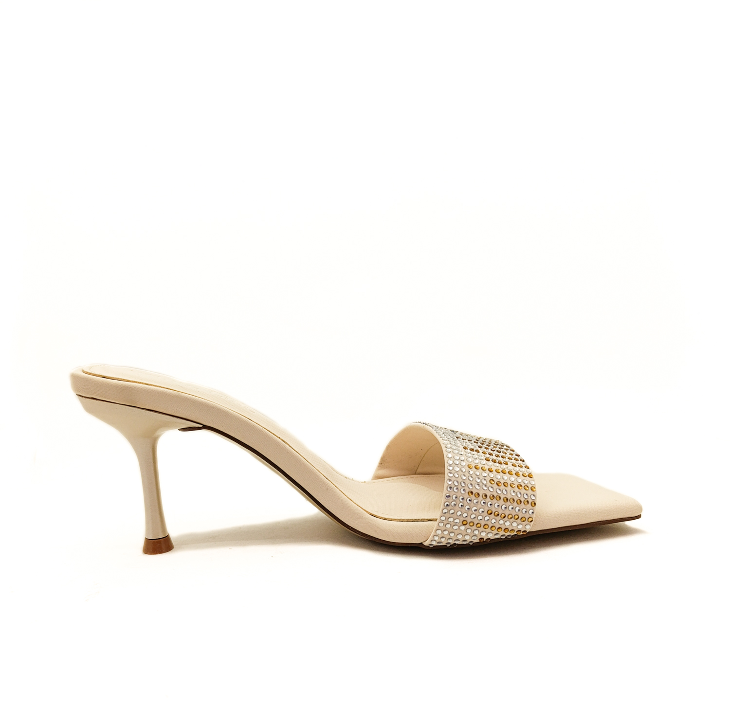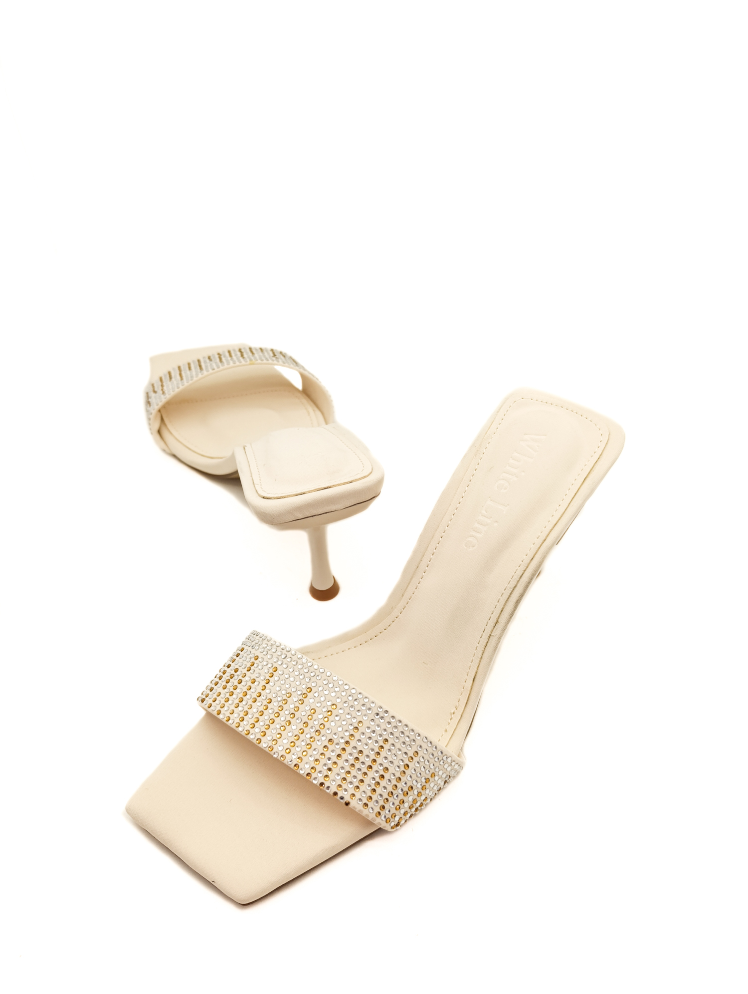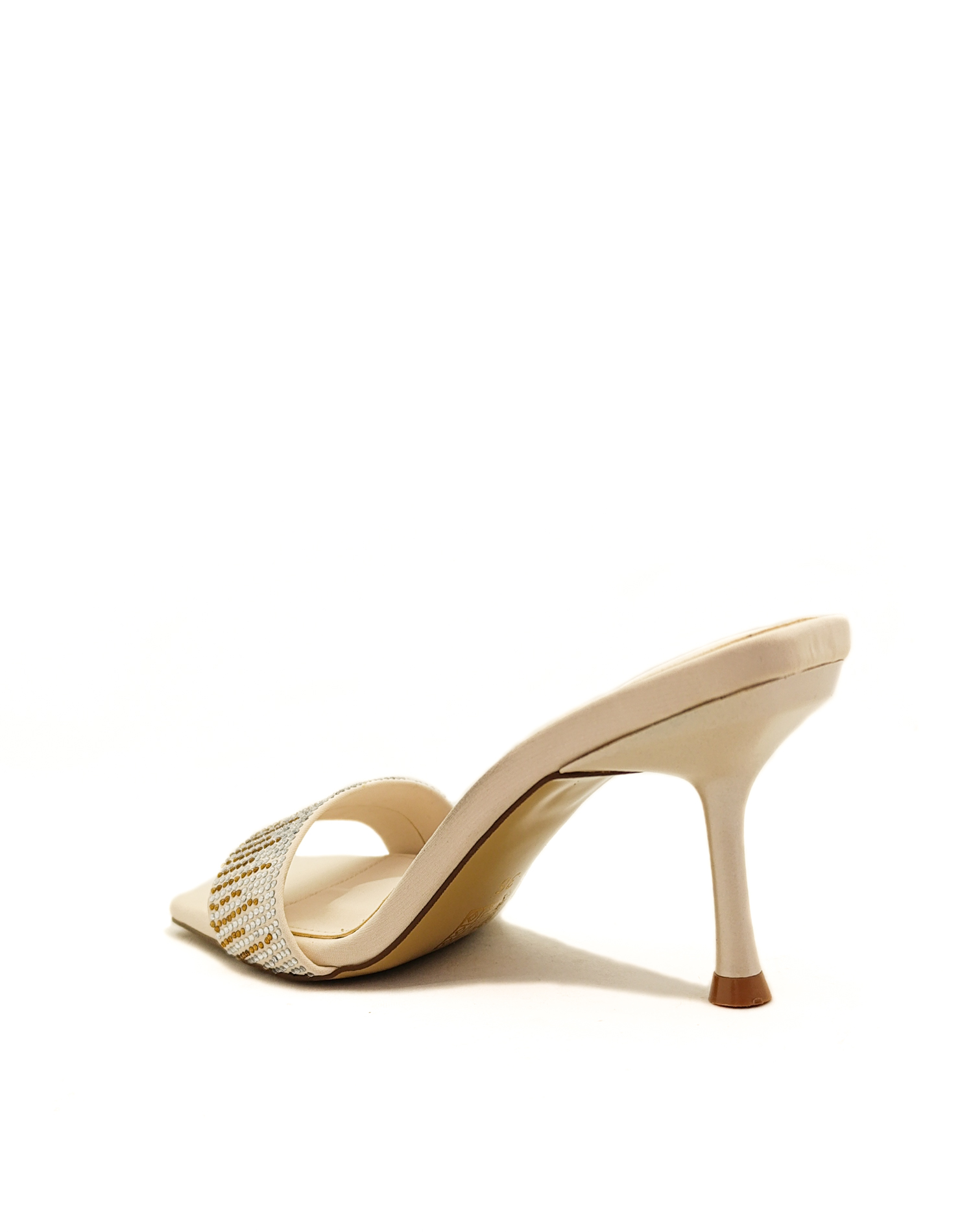 Bej Renk İnce Yüksek Topuk Taş Detaylı Abiye Kadın Terlik