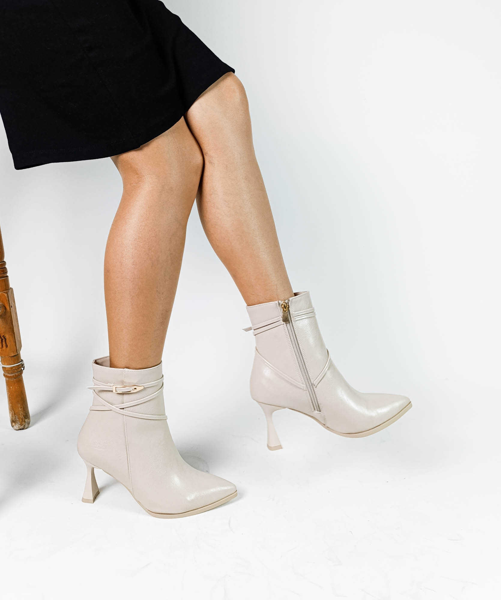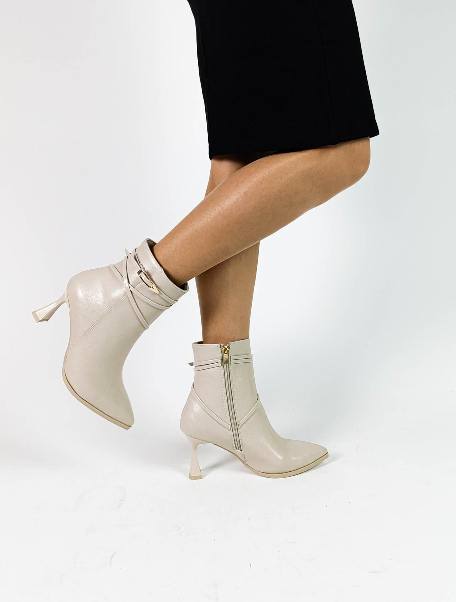 Bej Renk Sivri Burun Kadeh Topuk Fermuarlı Kadın Bot
