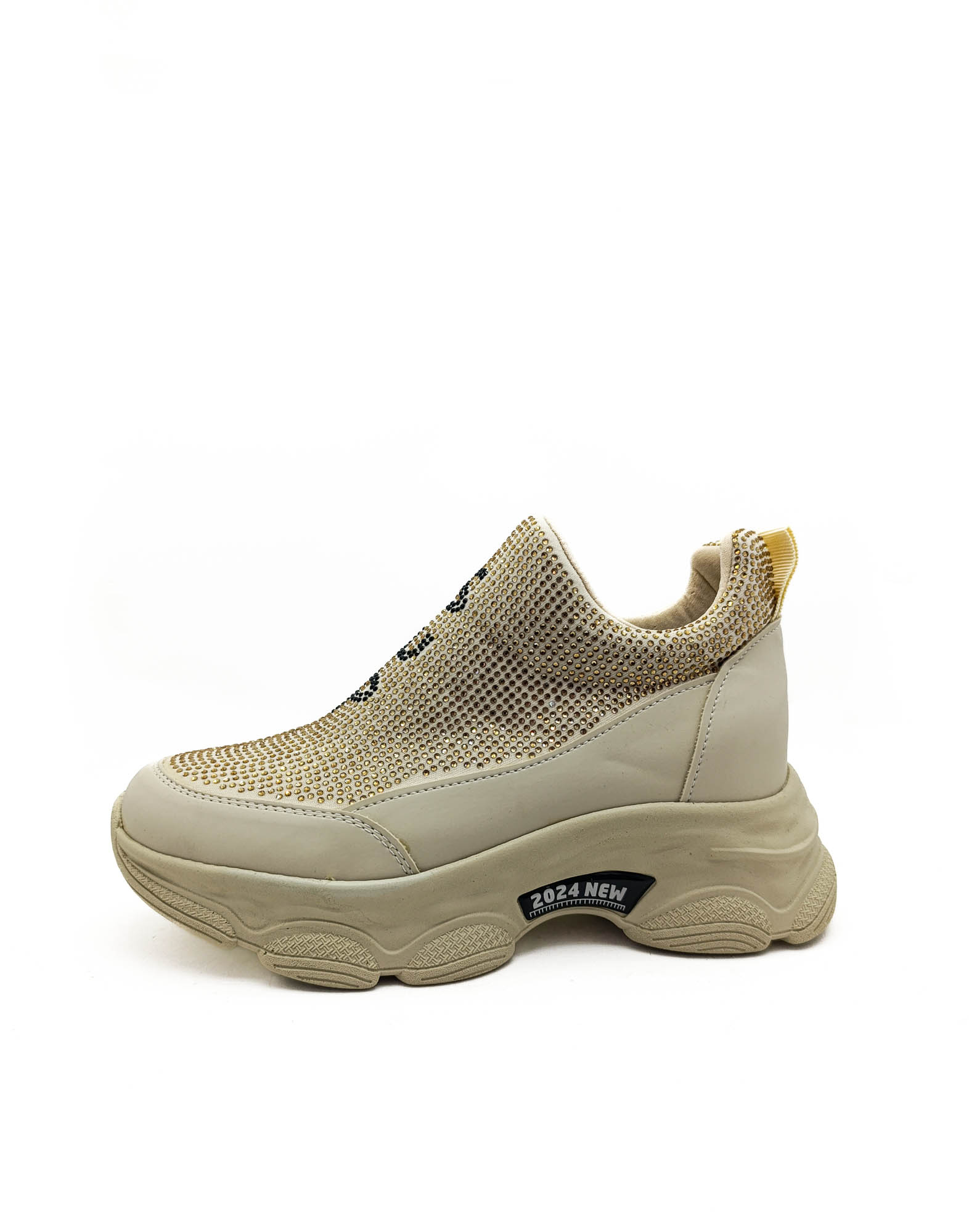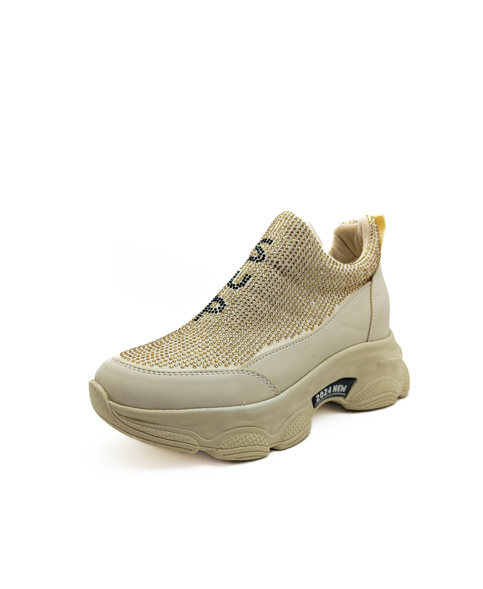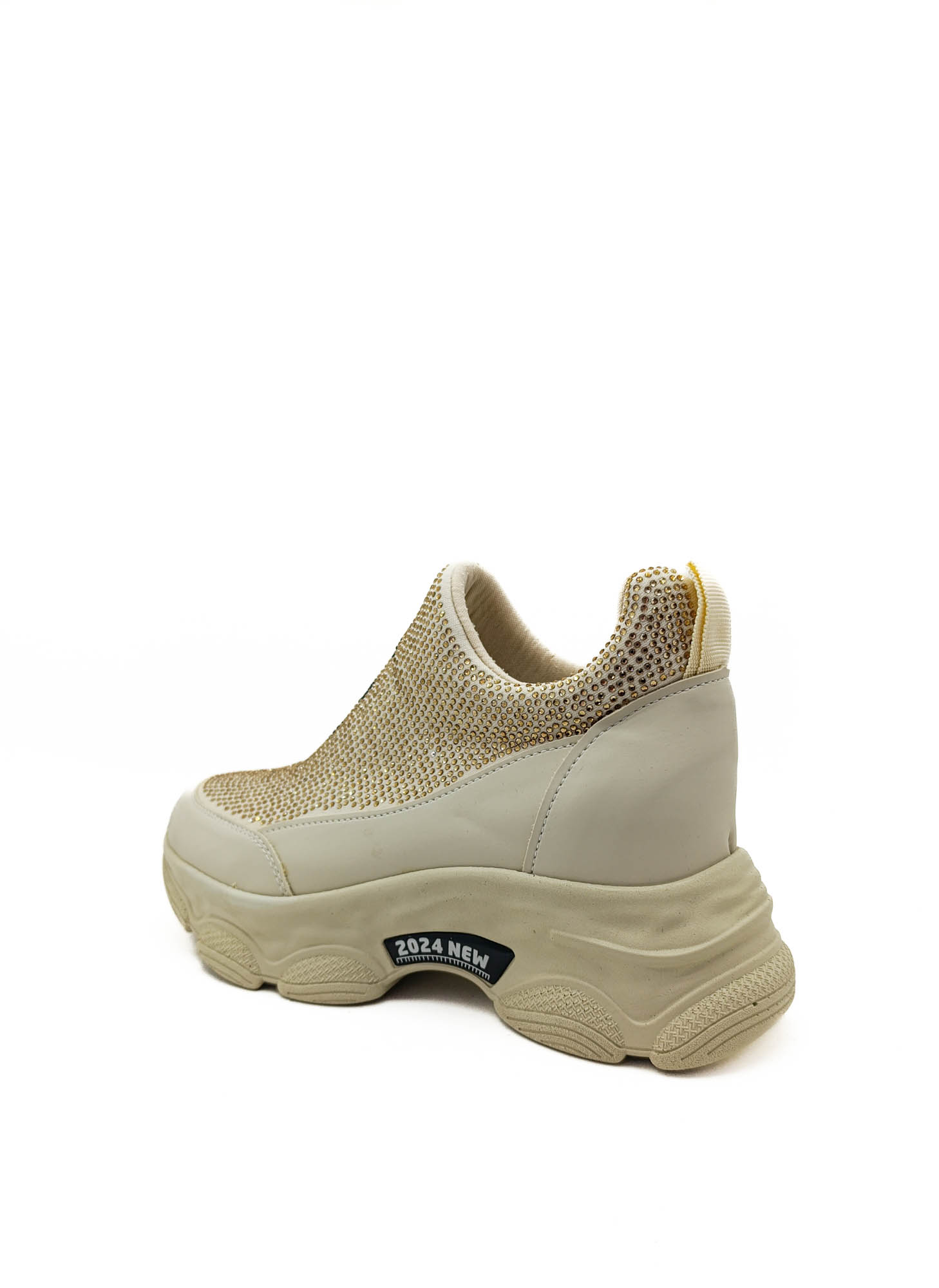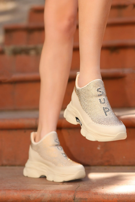 BeJ Renk Taş Detaylı Gizli Dolgu Topuk Lüx Tasarım Kadın Sneaker