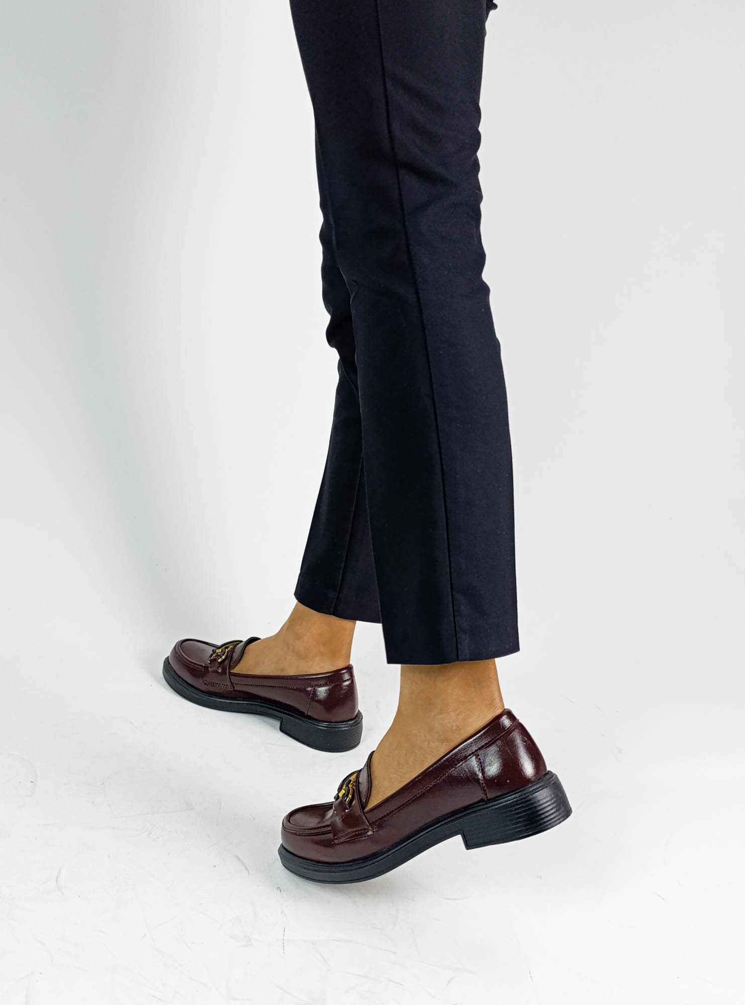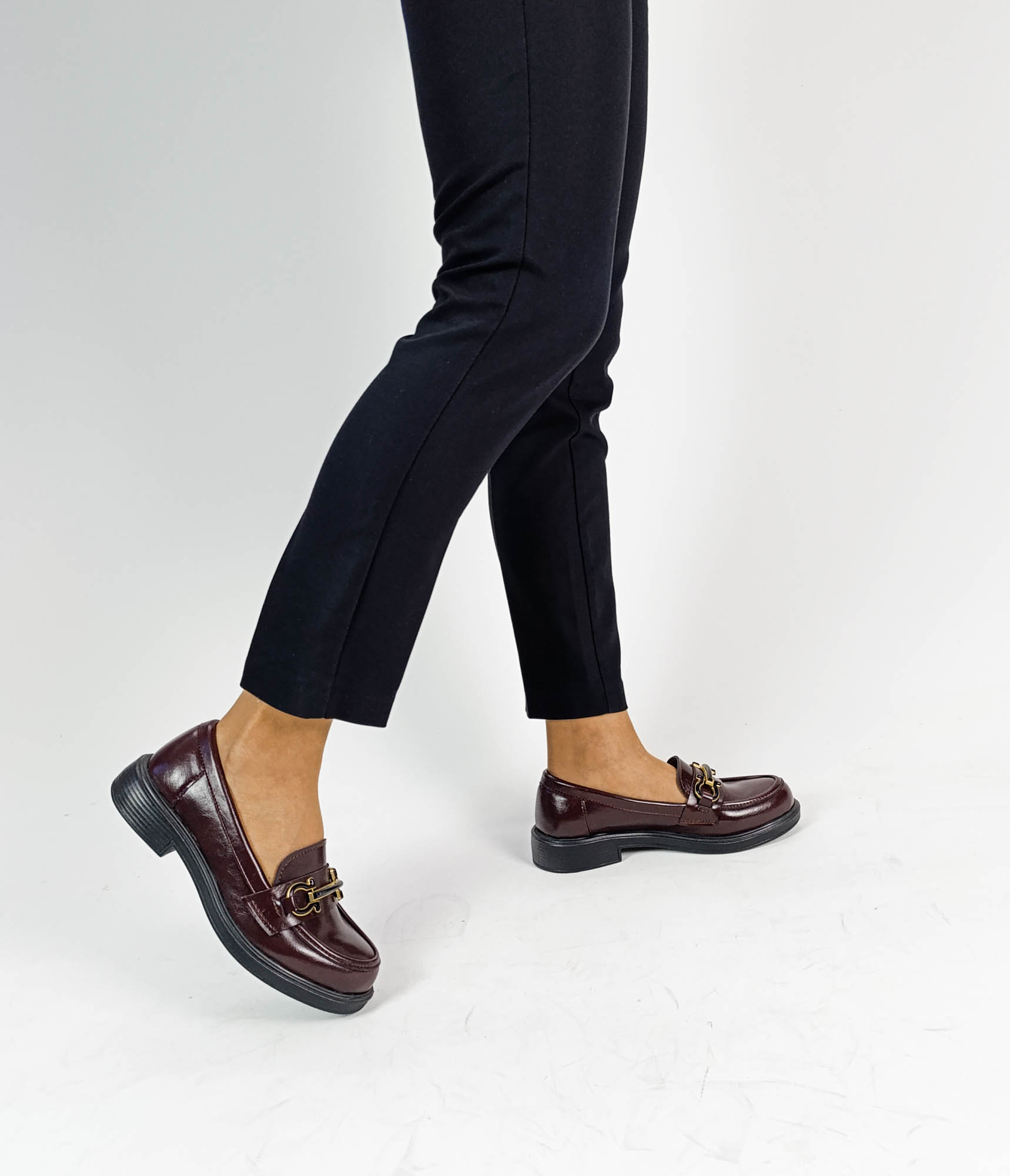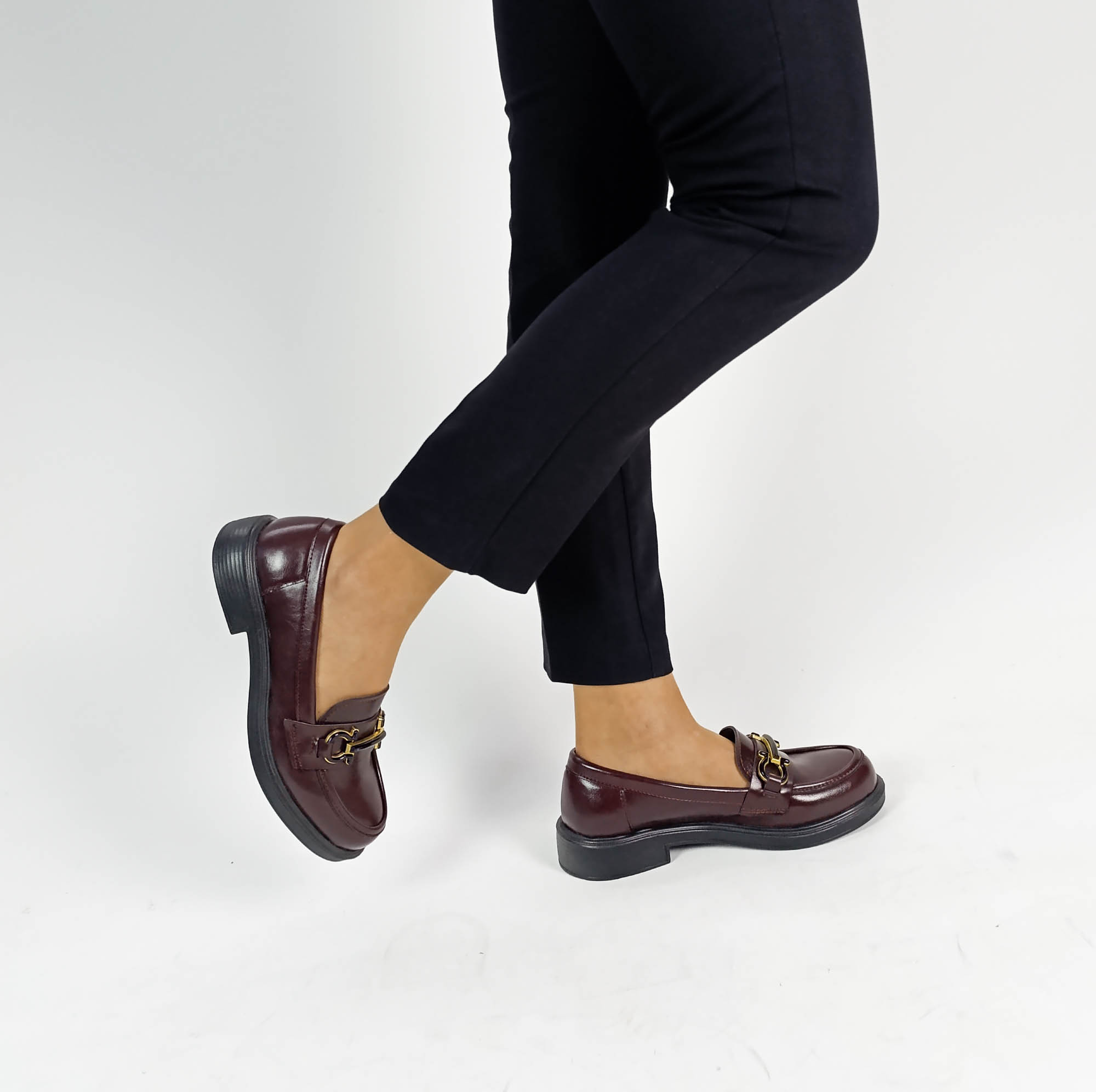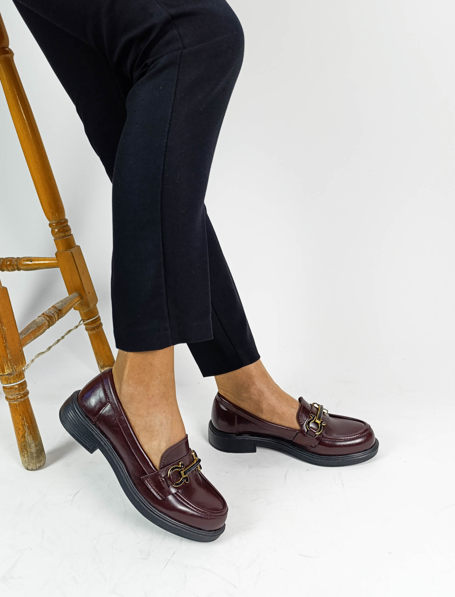 (White Line)Bordo Rugan Tokalı Kadın Loafer Ayakkabı