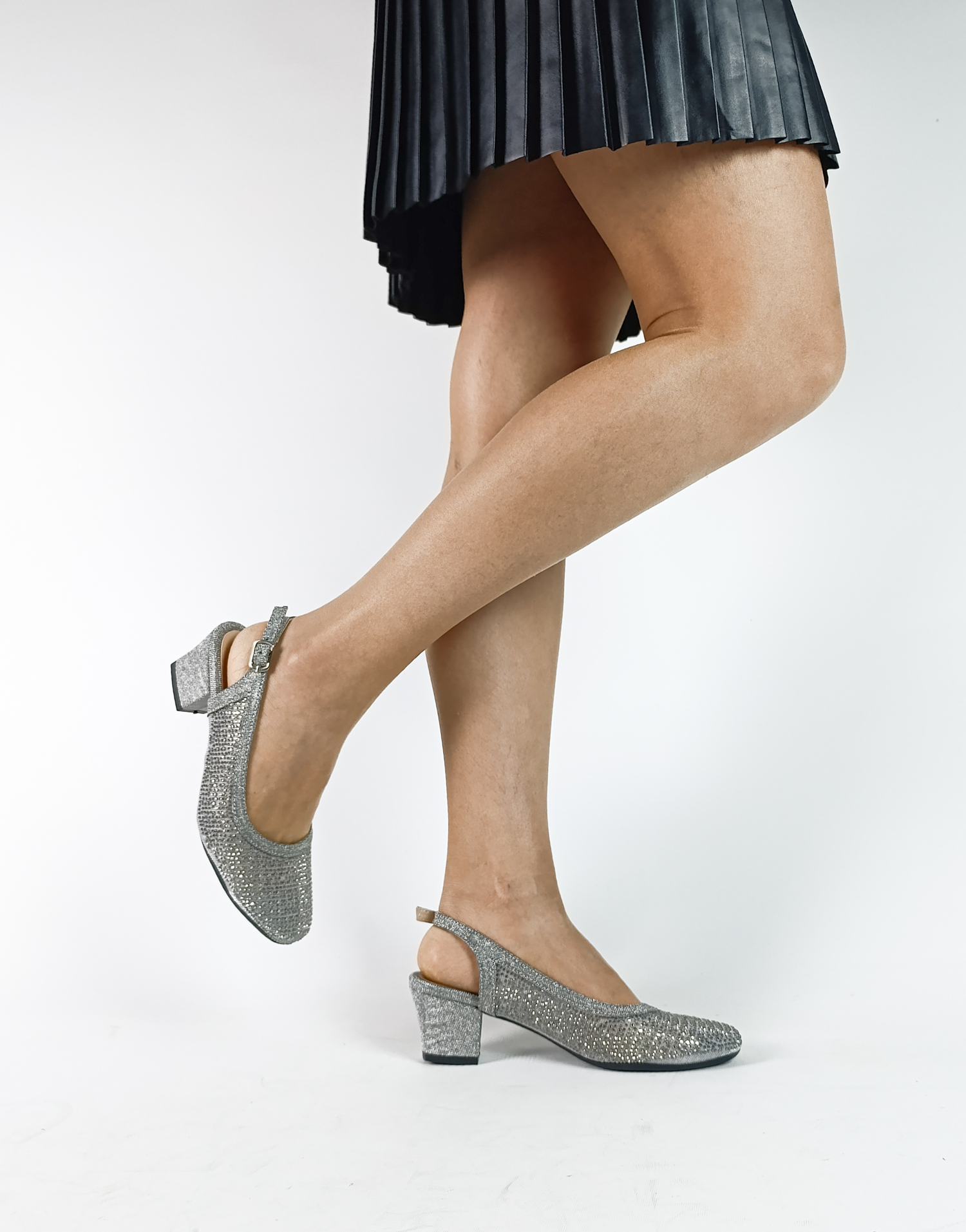 Gümüş Renk Fincan Kısa Kalın Topuk Arkası Açık Anne Topuklu Ayakkabı
