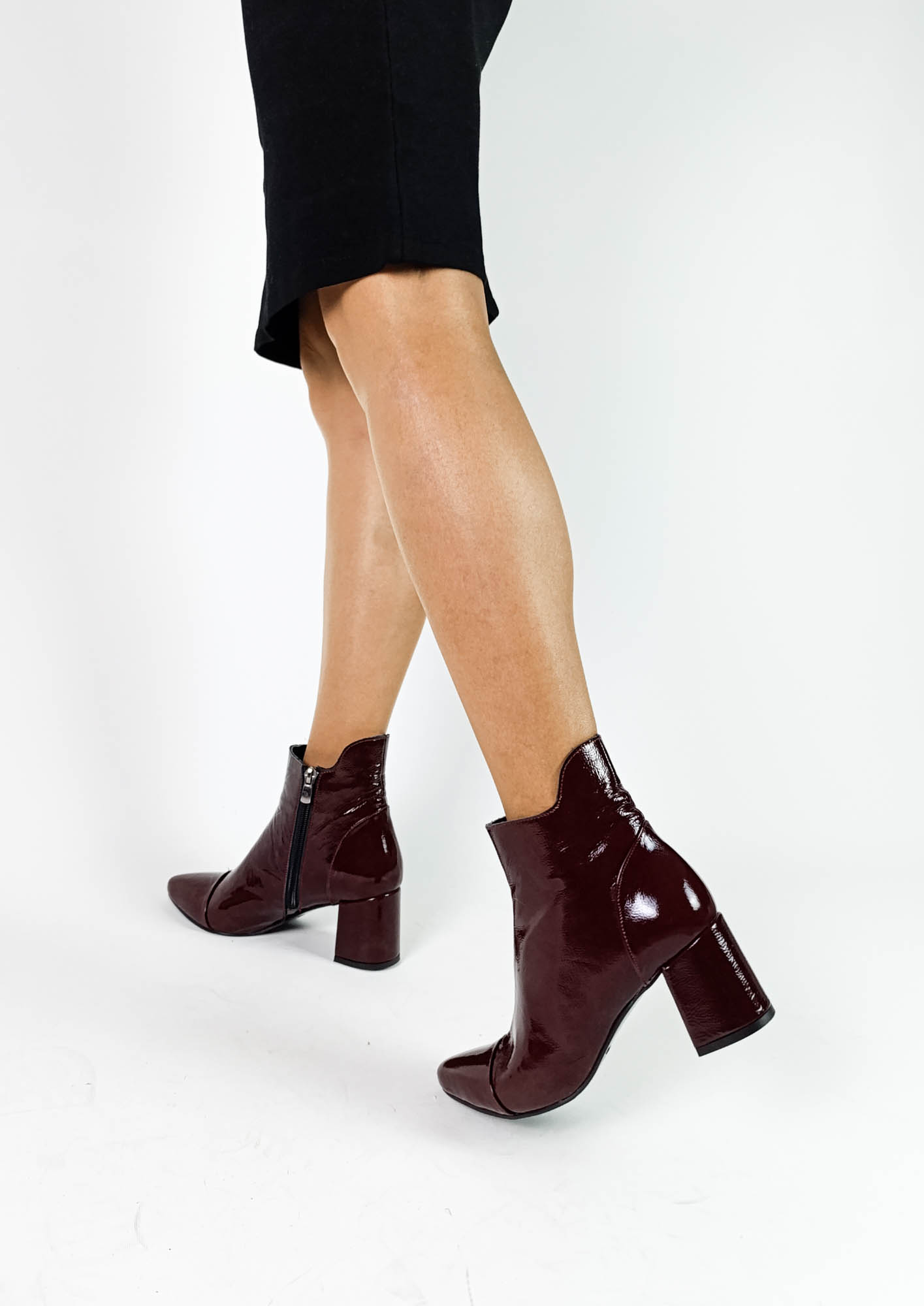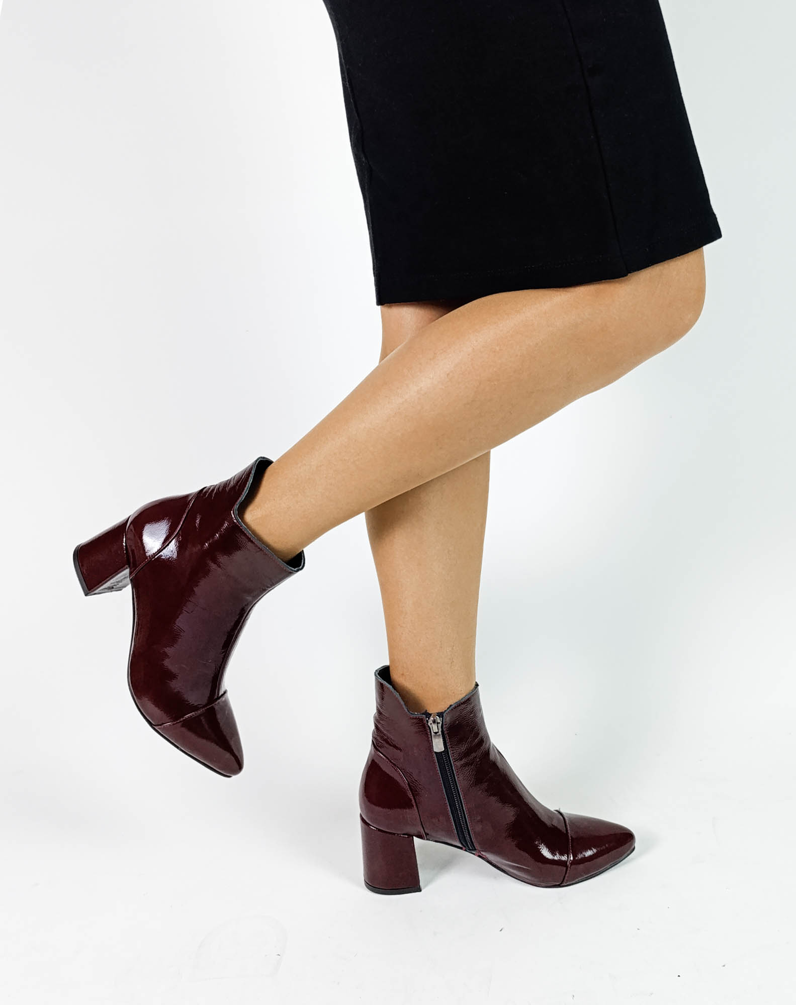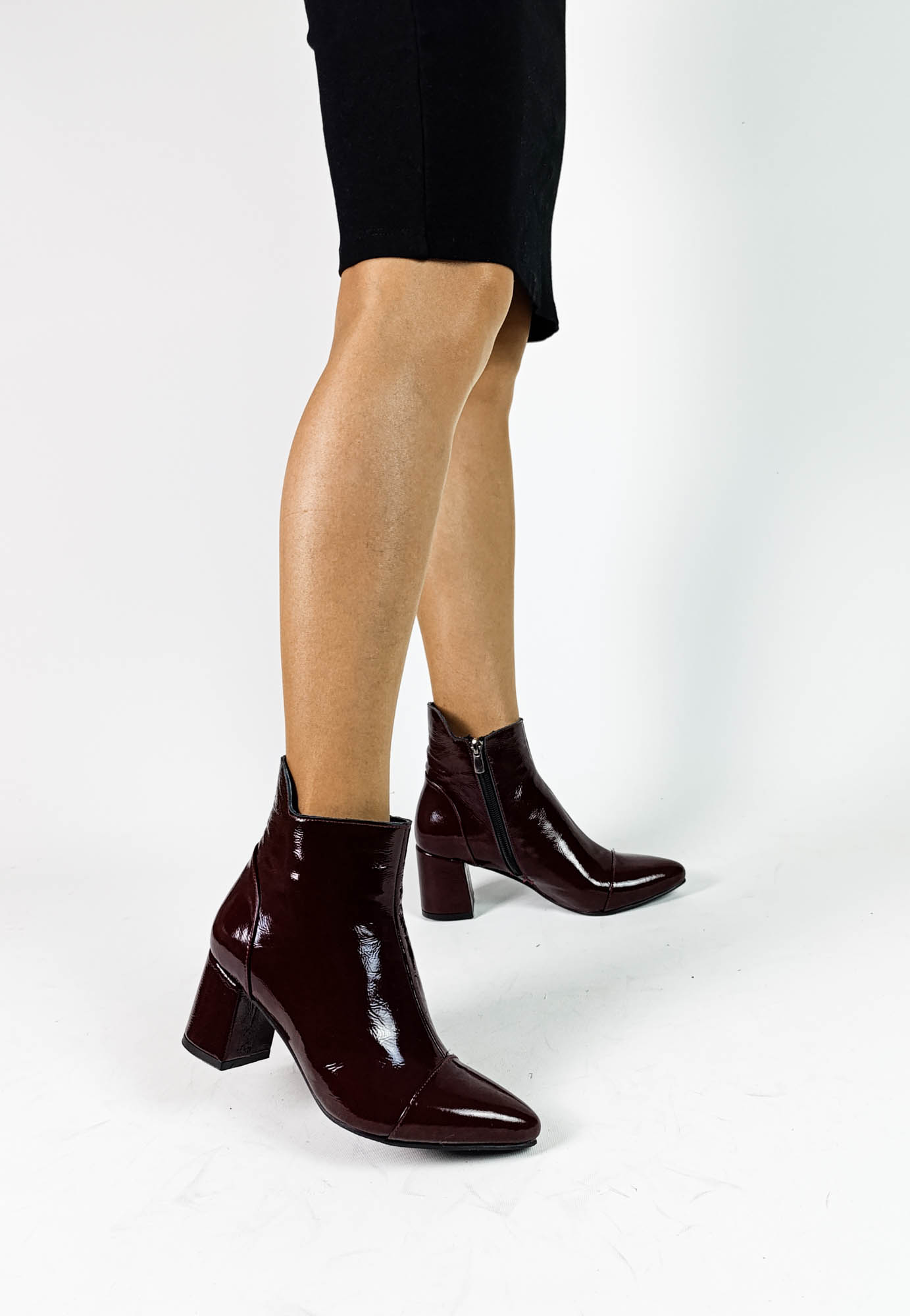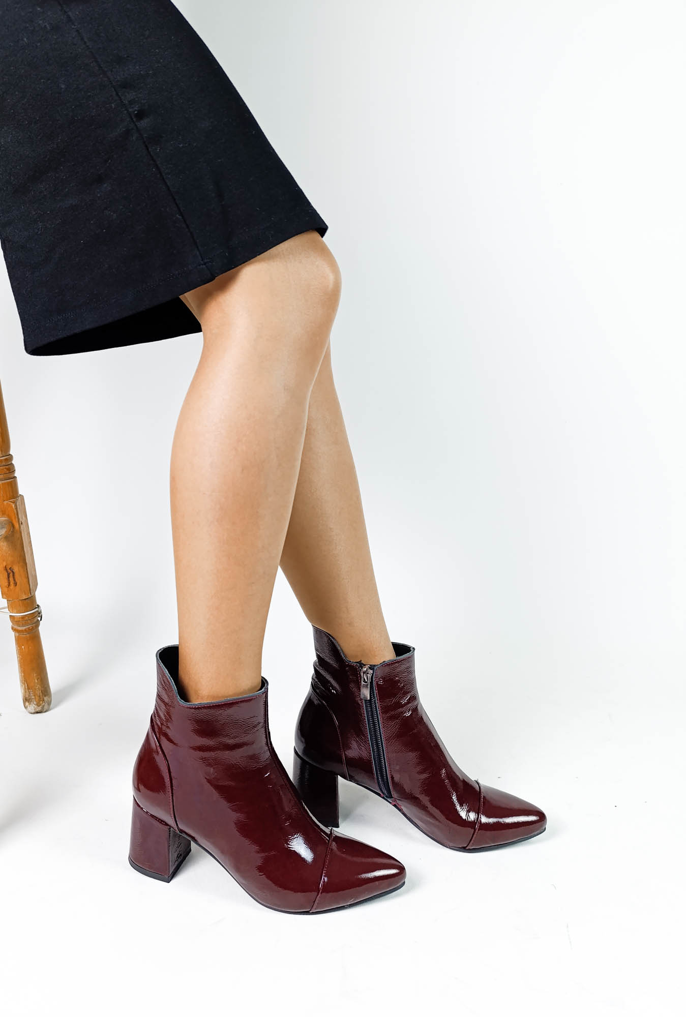 Hakiki Deri Bordo Rugan Fermuarlı Kalın Topuk Kadın Bot