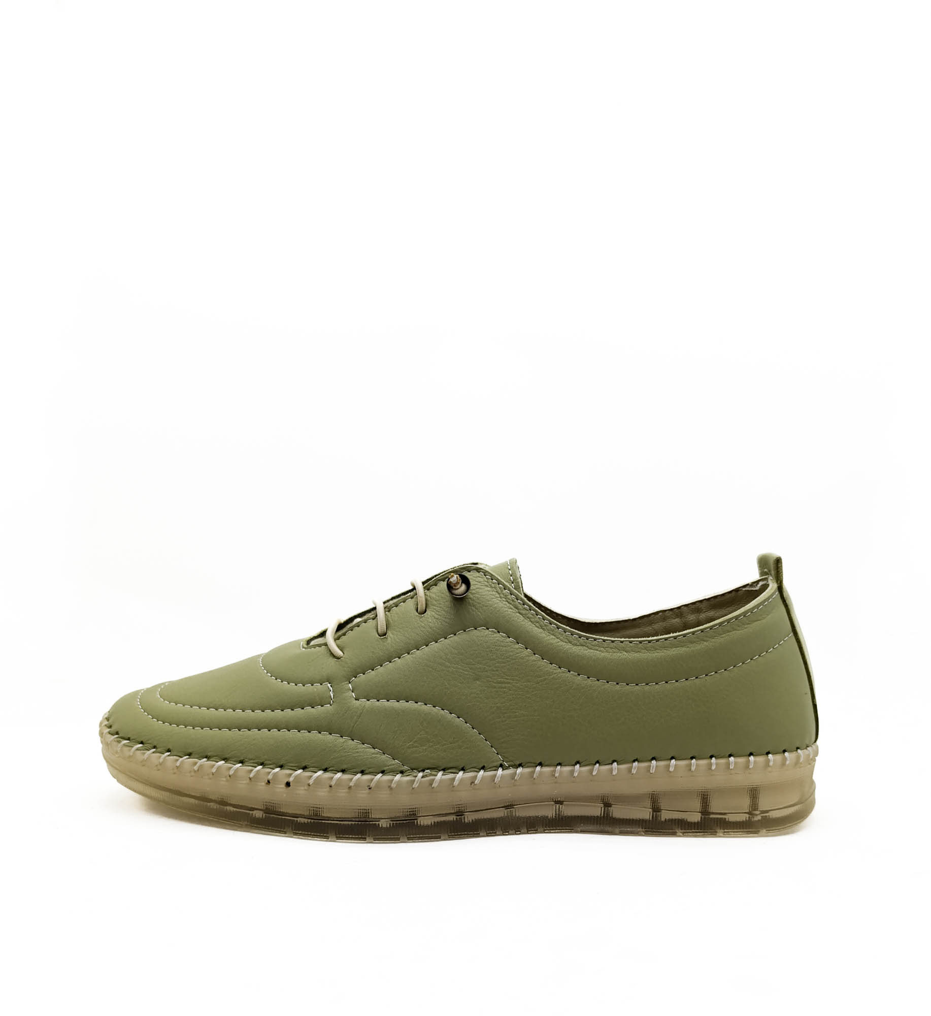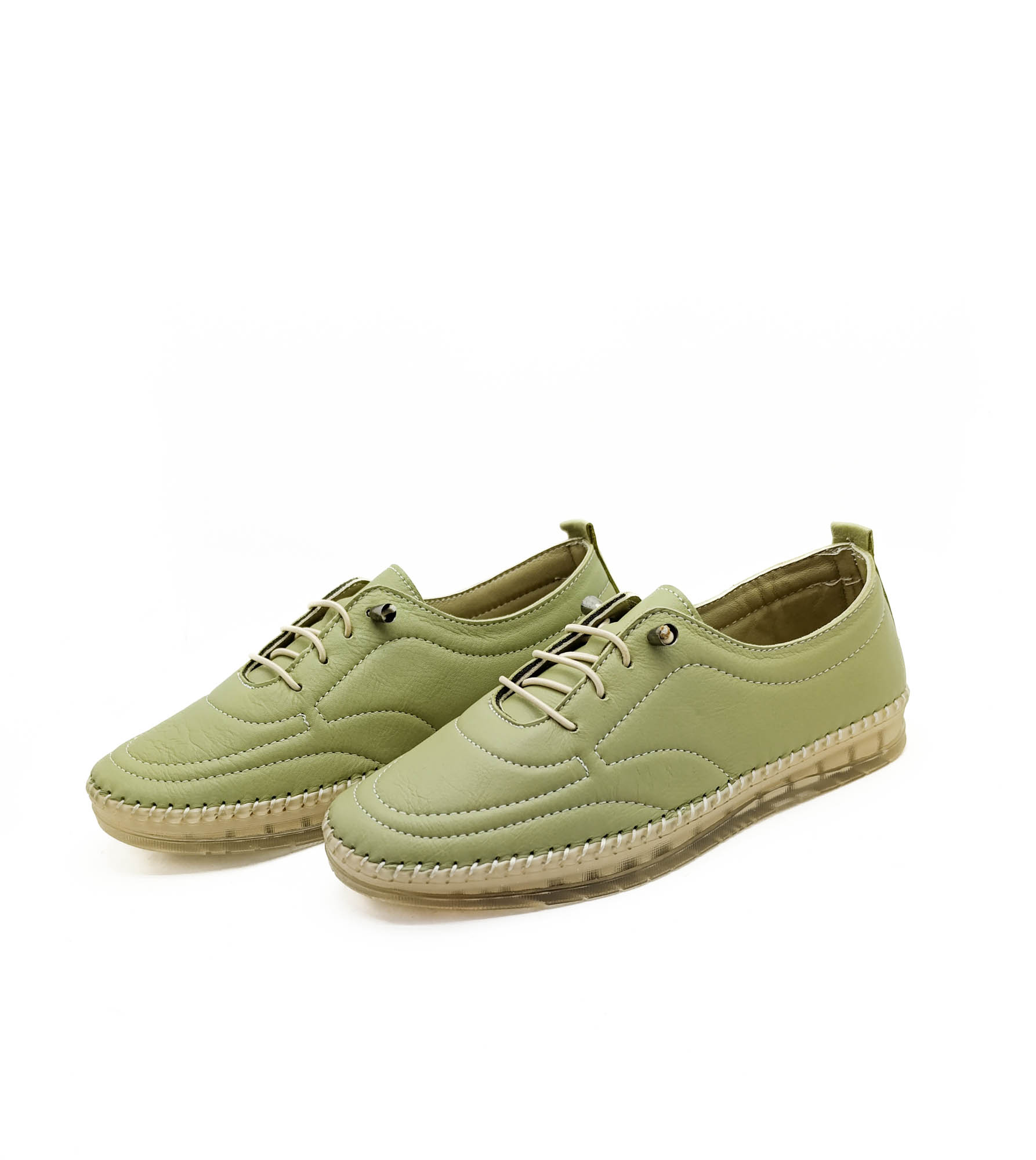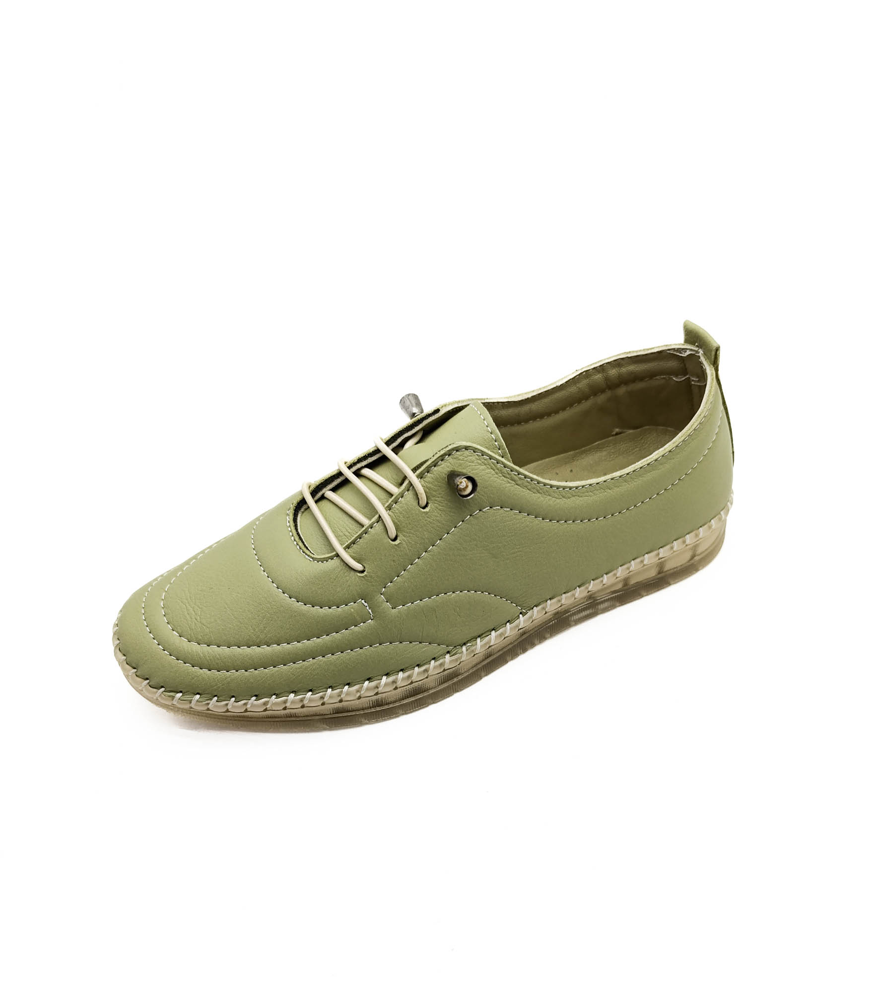 Hakiki Deri Mint Yeşili Renk Ortopedik Düz Taban Kadın Babet Ayakkabı