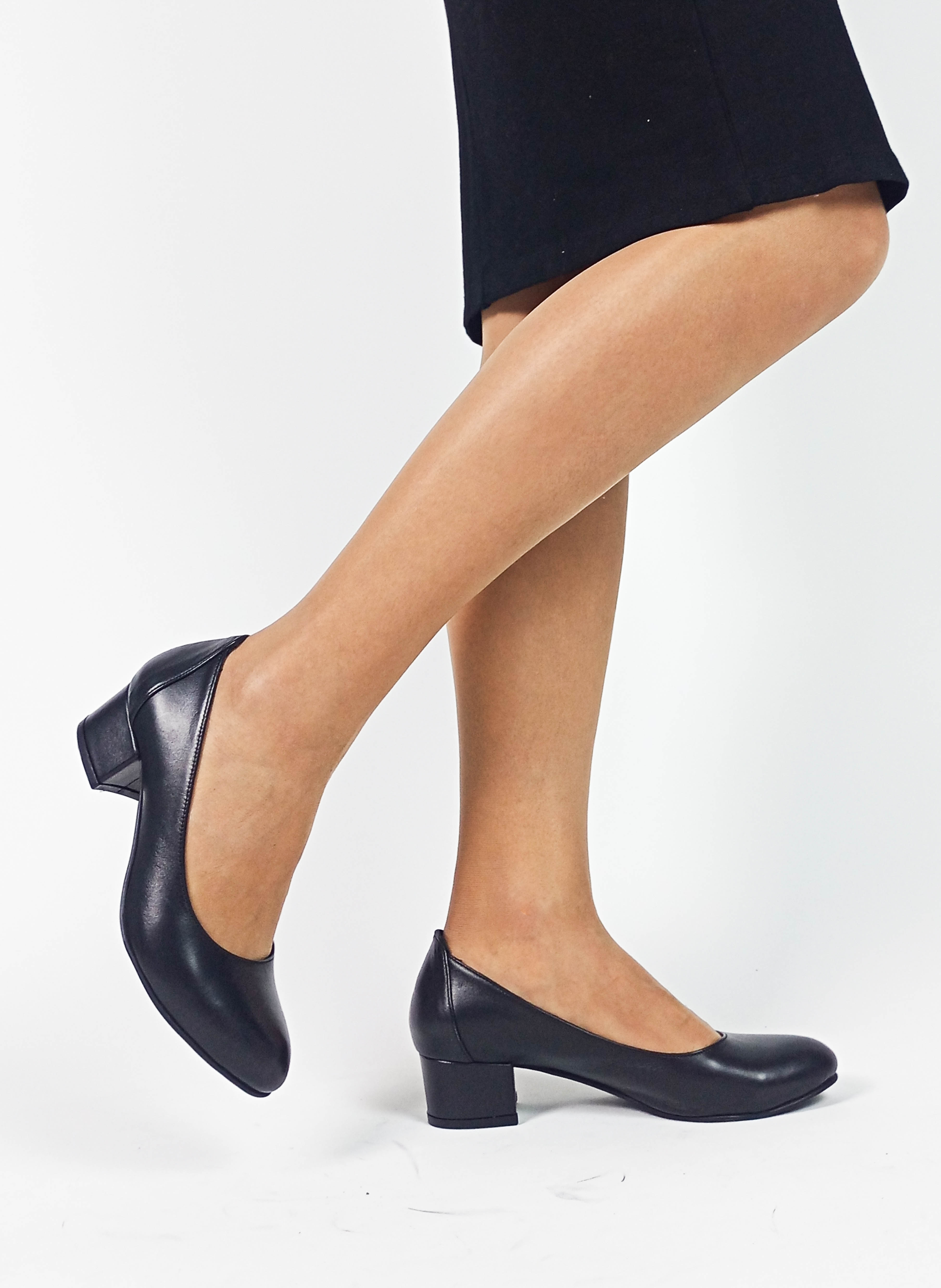 Hakiki Deri Siyah Kalın Topuk Kadın Topuklu Ayakkabı