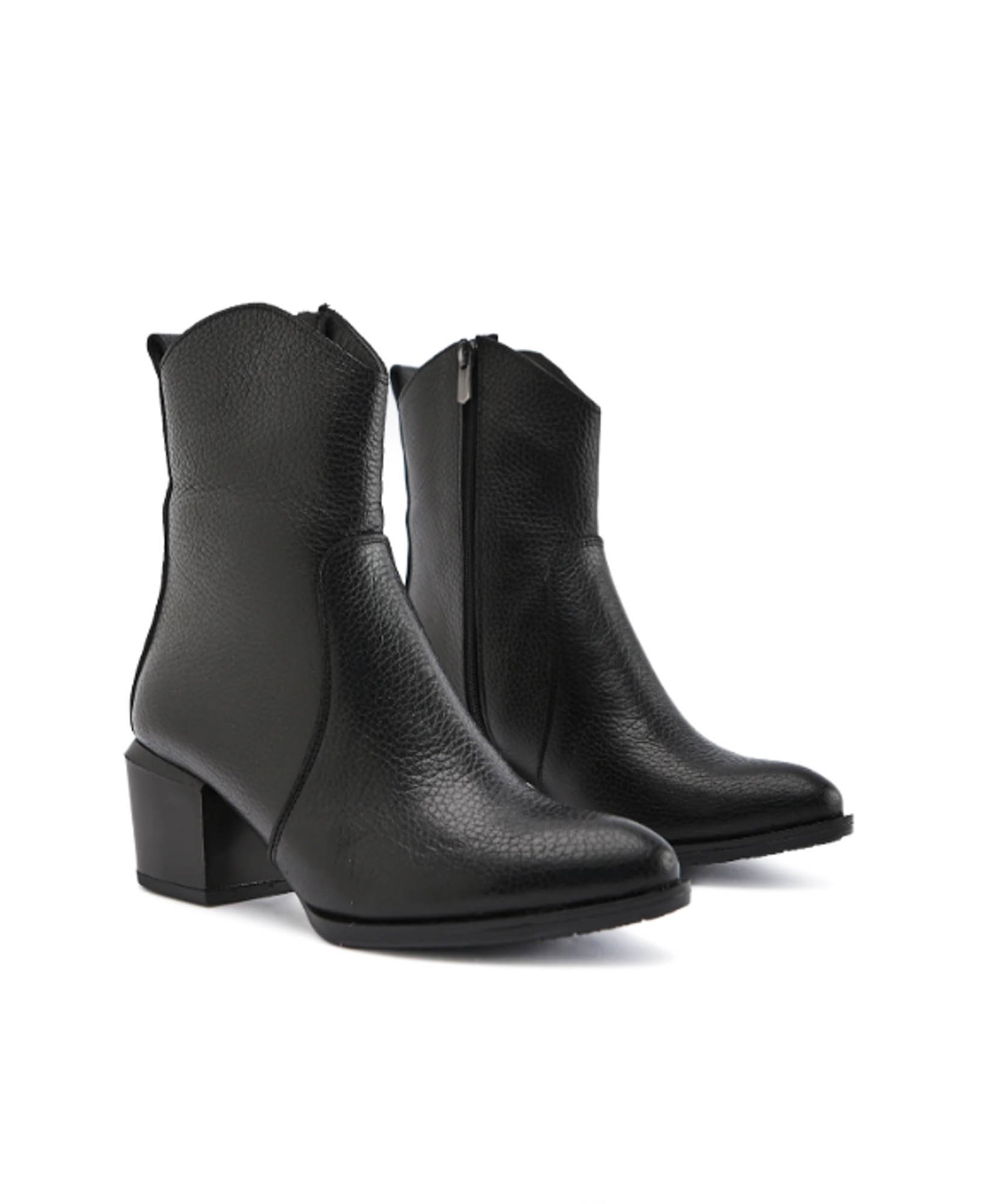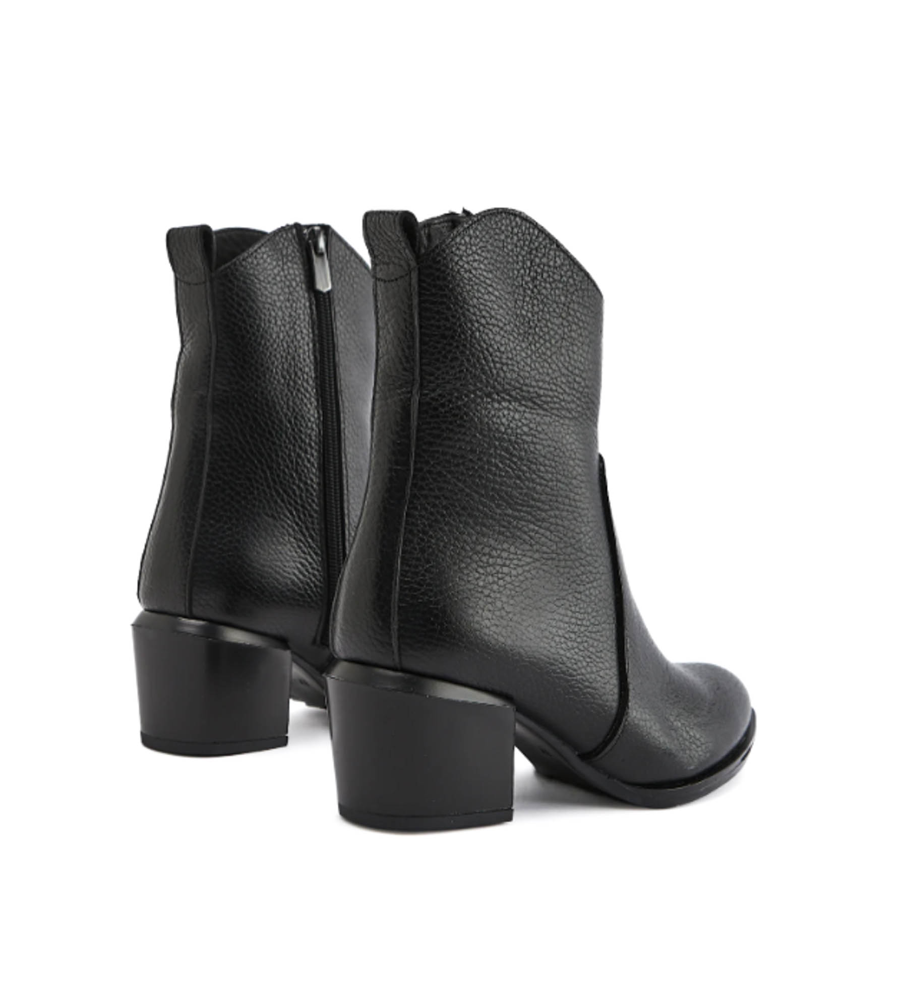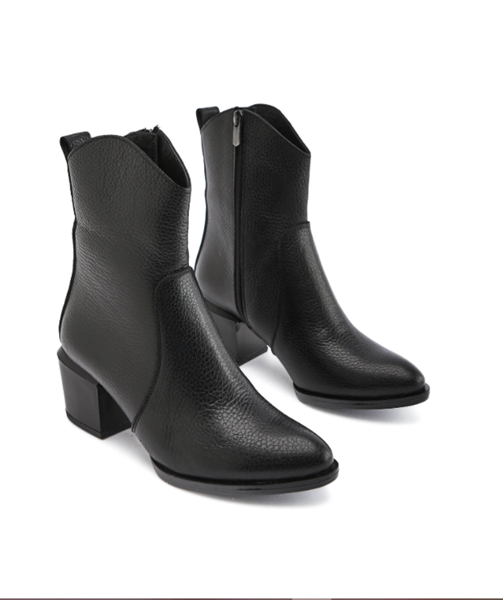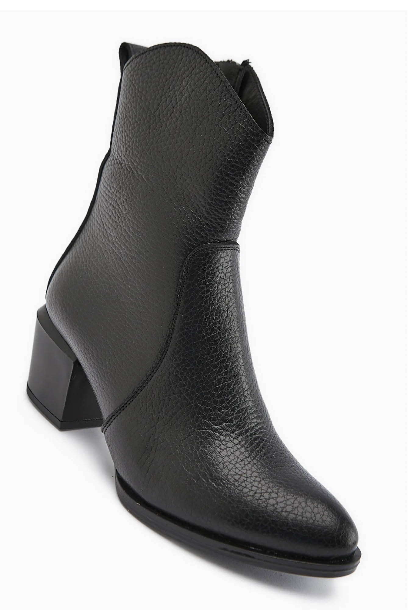 Hakiki Deri Siyah Renk Kalın Topuk Sivri Burun Kadın Bot