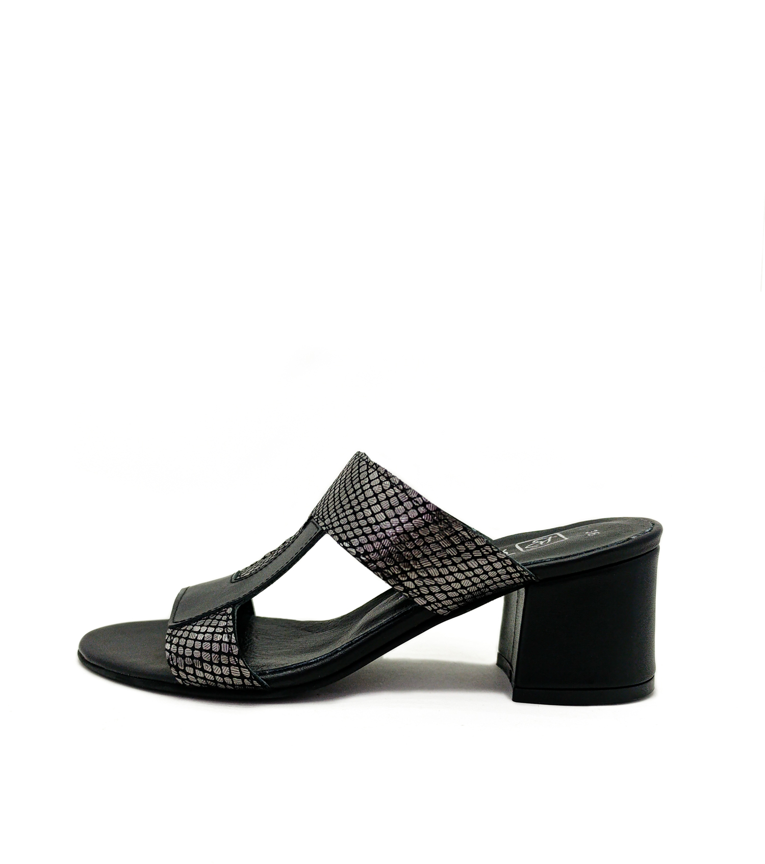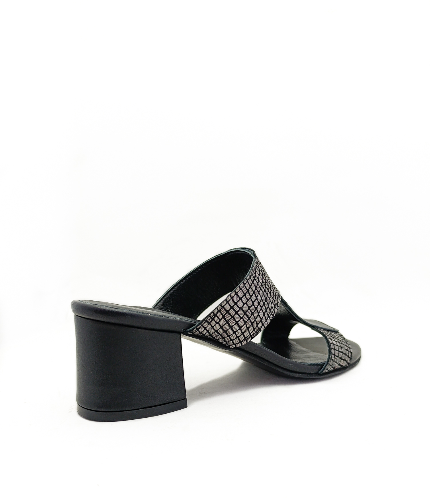 Hakiki Deri Siyah Renk Kalın Topuk Kadın Topuklu Terlik