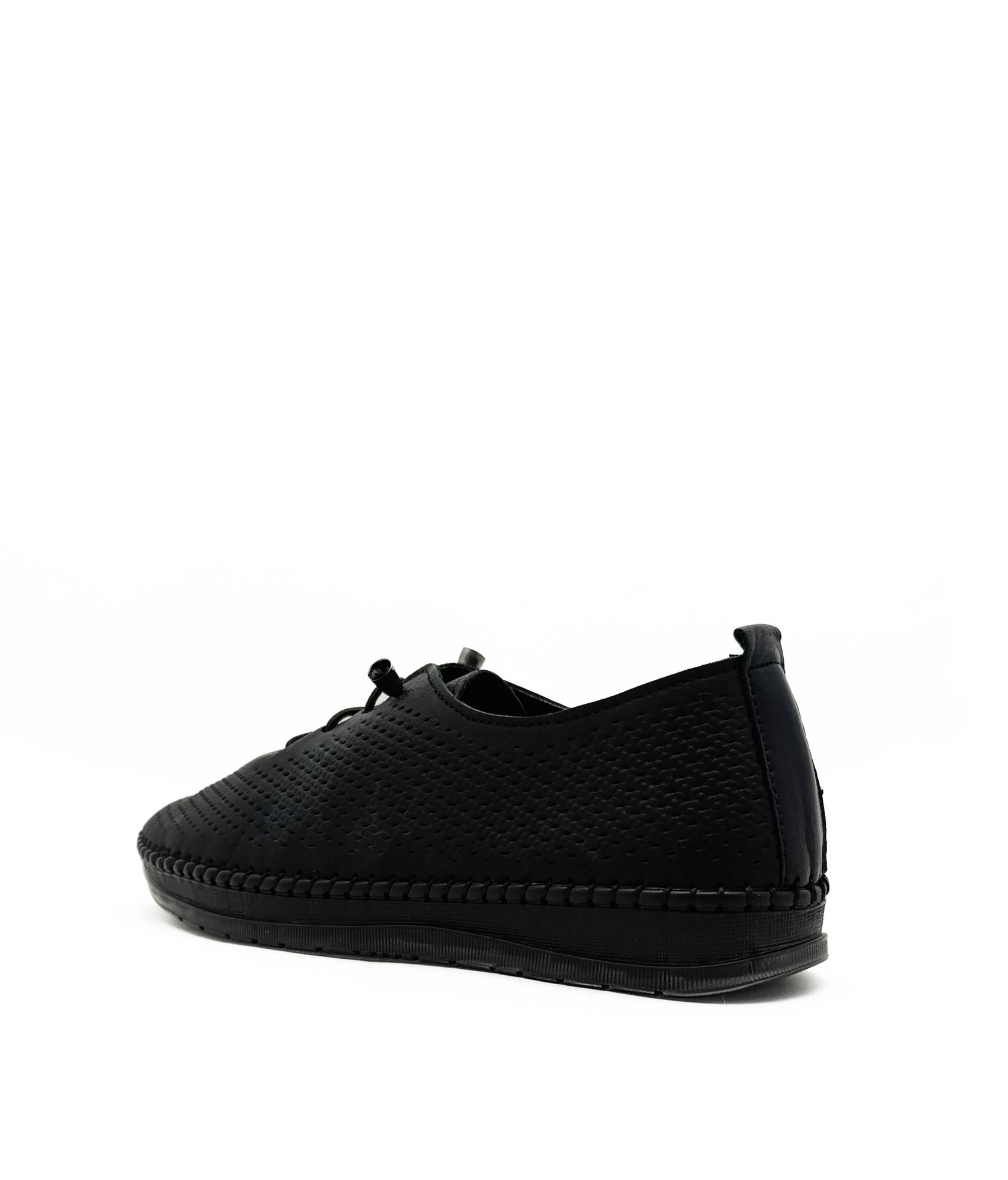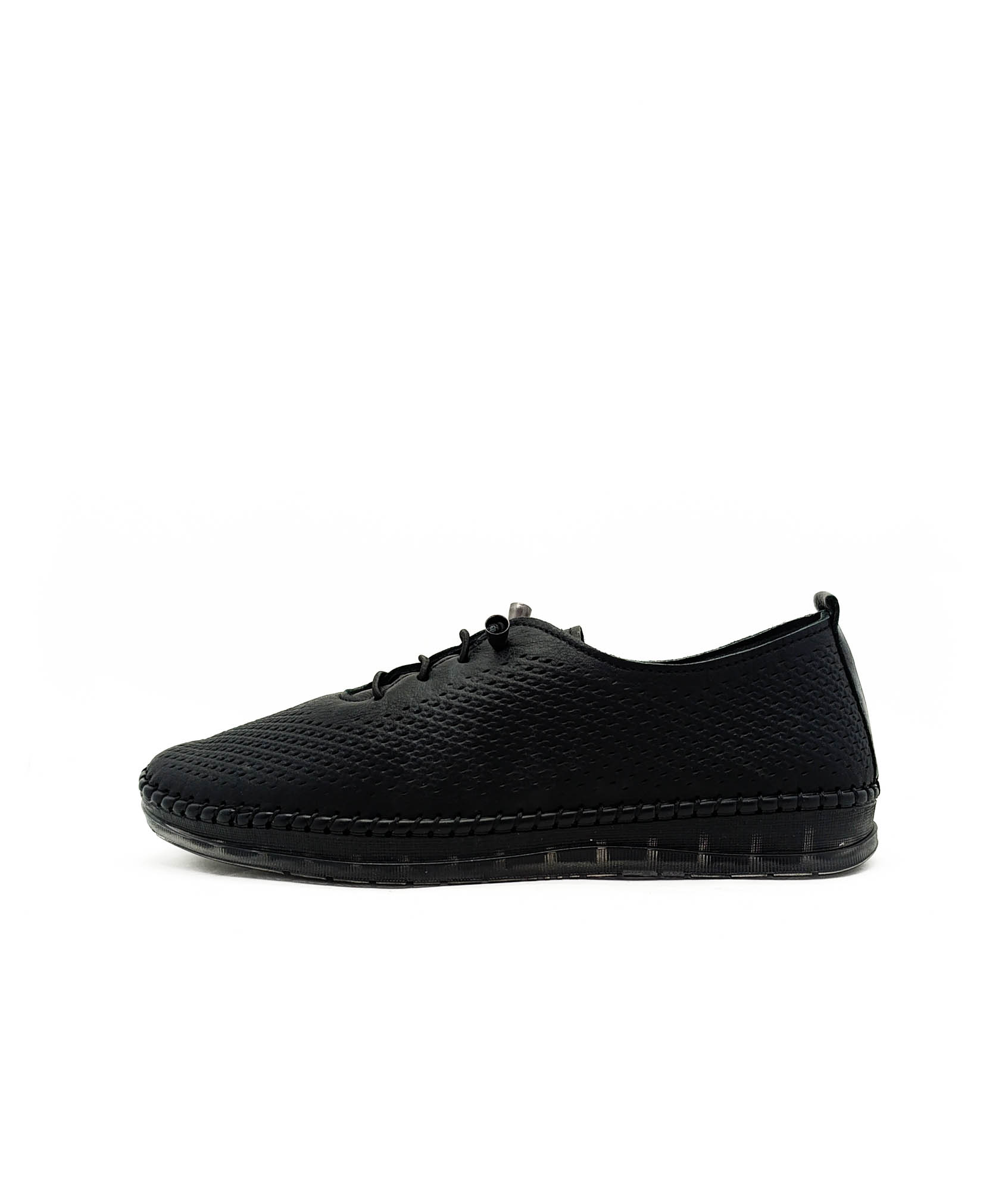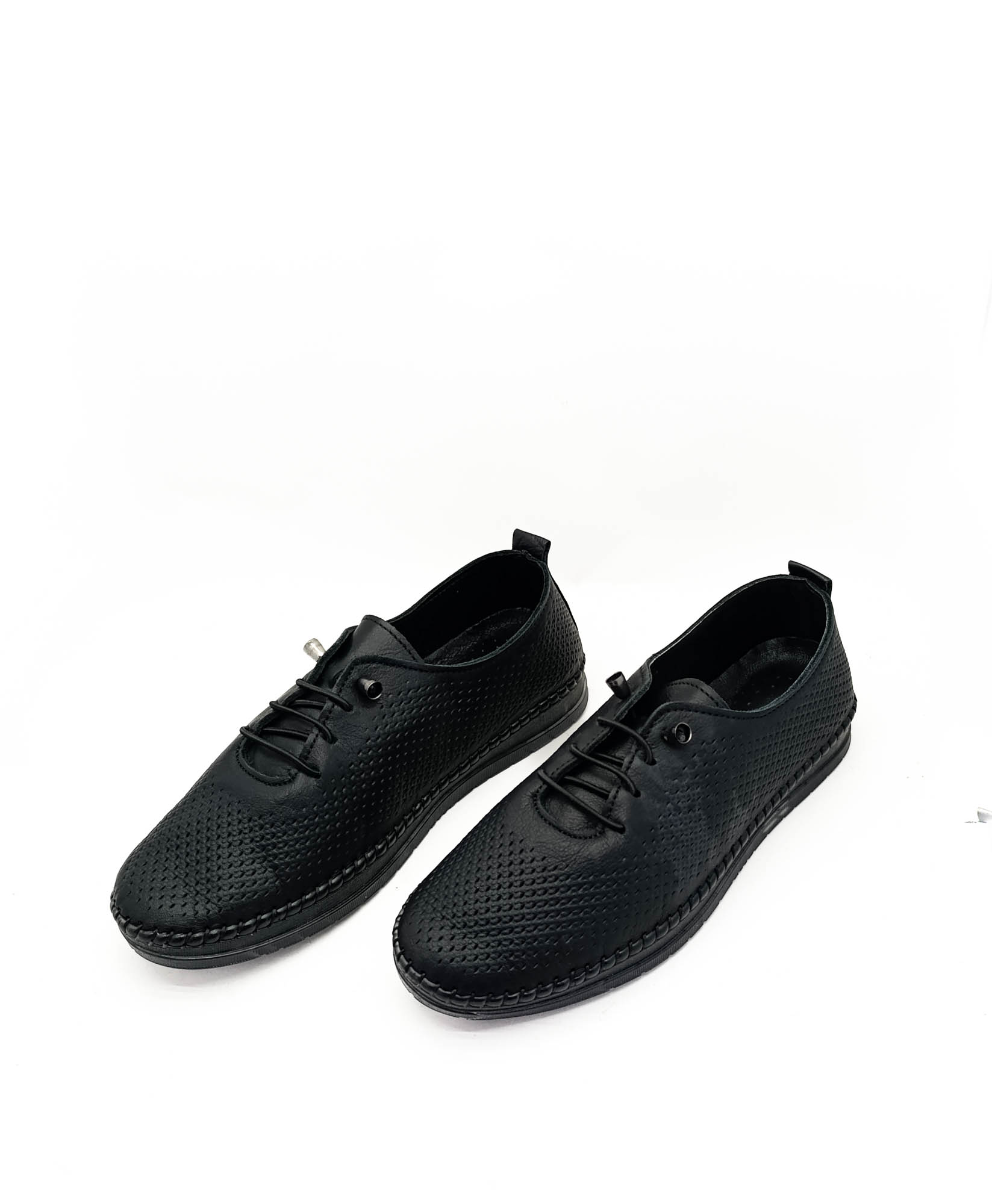 Hakiki Deri Siyah Renk Ortopedik Düz Taban Kadın Babet Ayakkabı