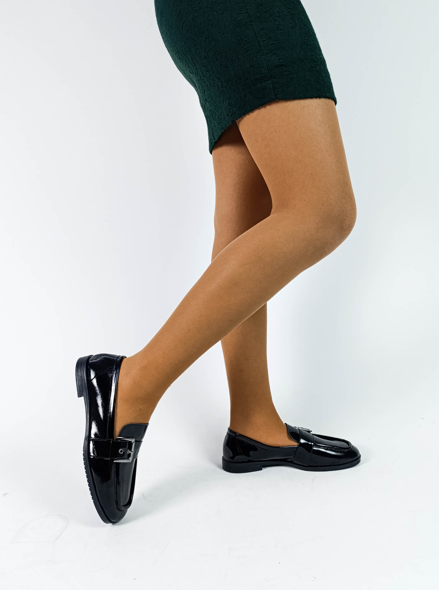 Hakiki Deri Tokalı Siyah Renk Alçak Topuk Kadın Loafer Ayakkabı