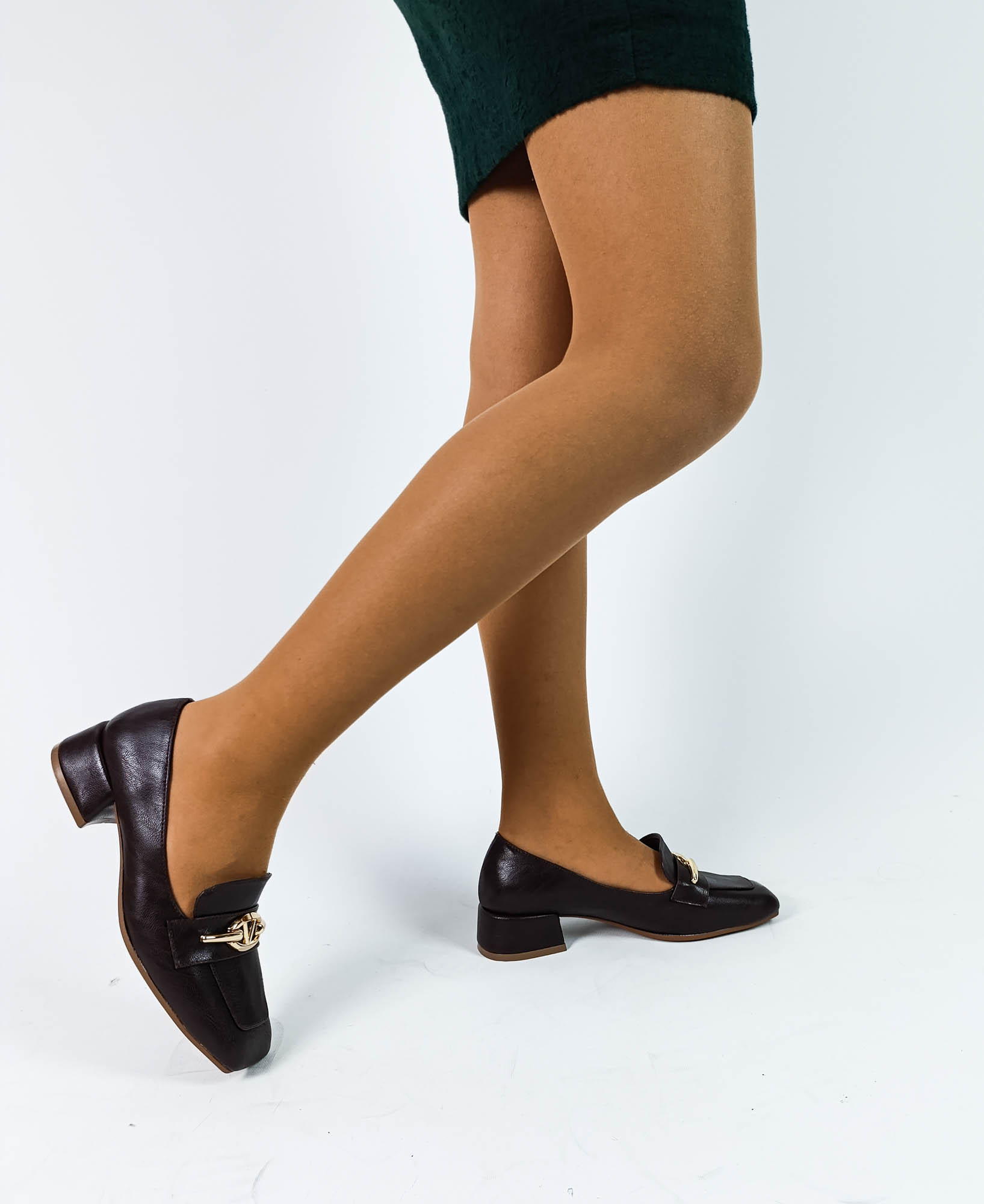 (White Line)Siyah Renk Kalın Topuklu Tokalı Kadın Topuklu Ayakkabı