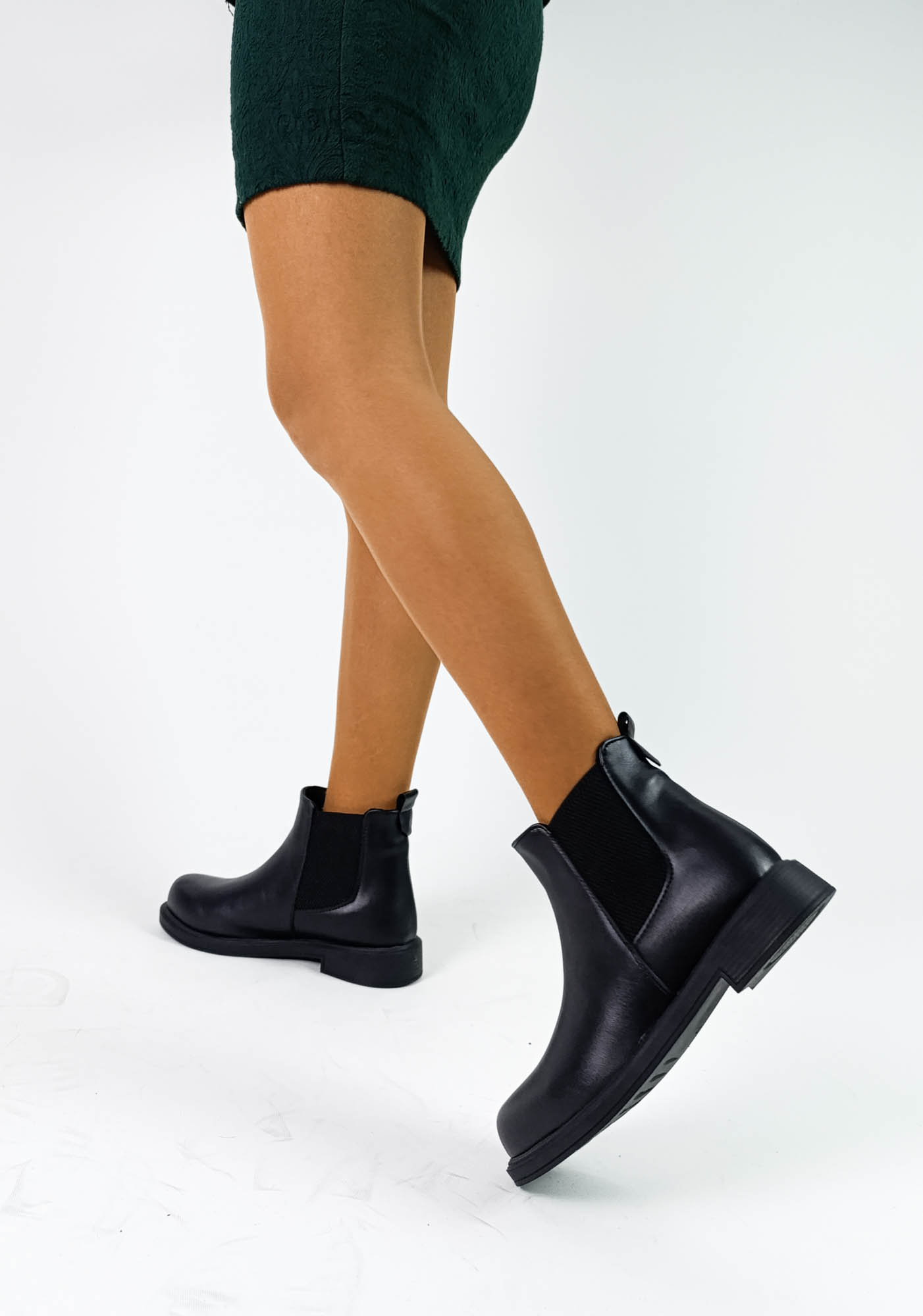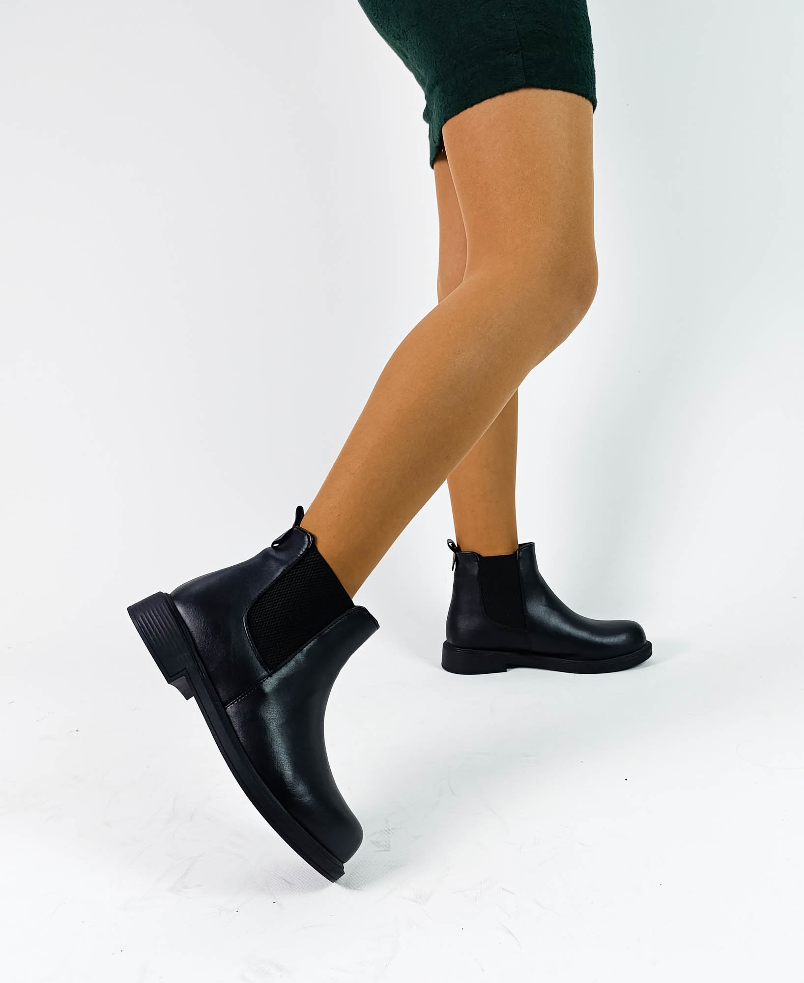 (White Line)Siyah Renk Cilt Kauçuk Taban Lastikli Kadın Bot