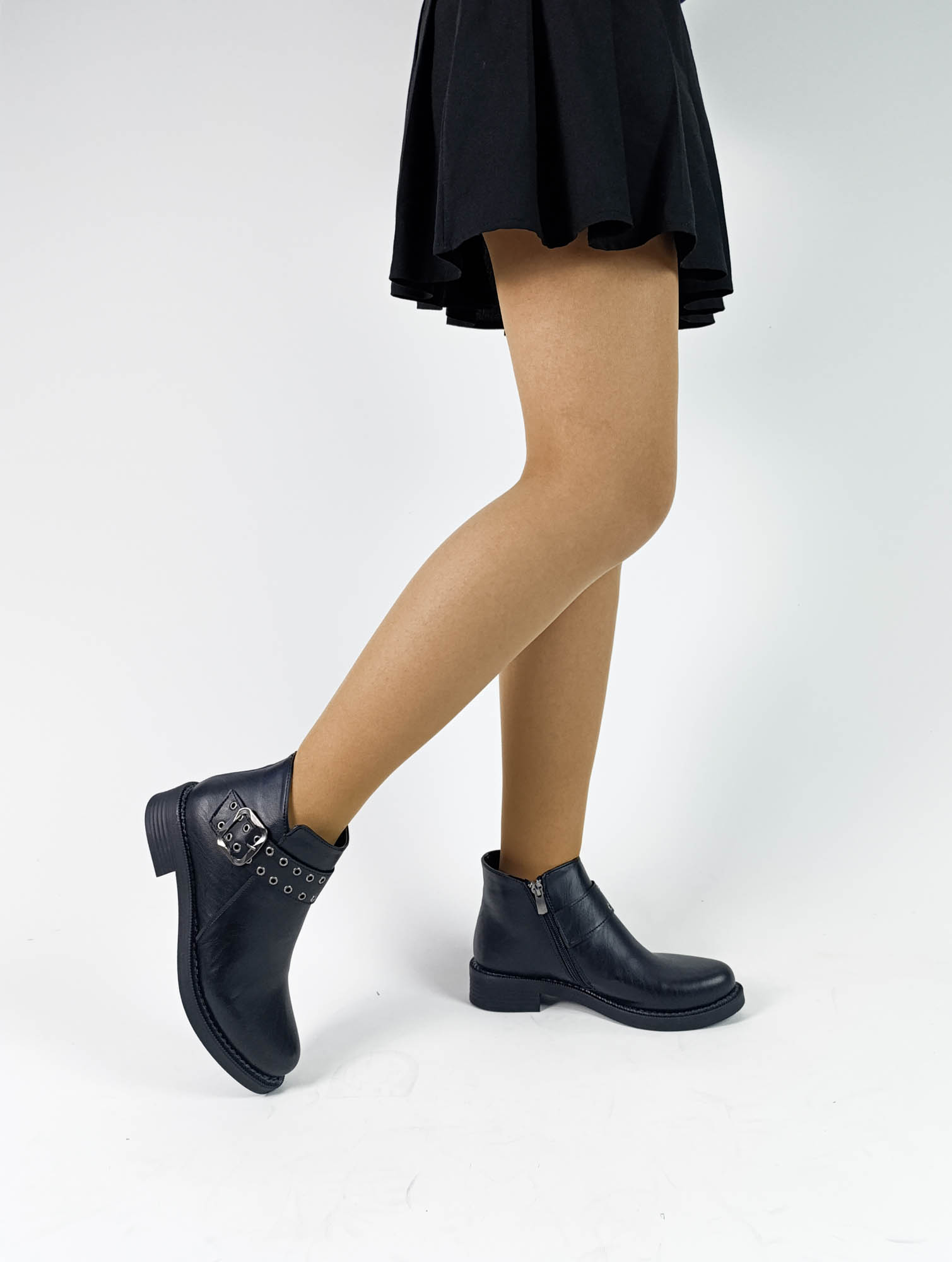 (White Line)Siyah Renk Fermuarlı Cilt Deri Kemer Aksesuarlı Kadın Bot