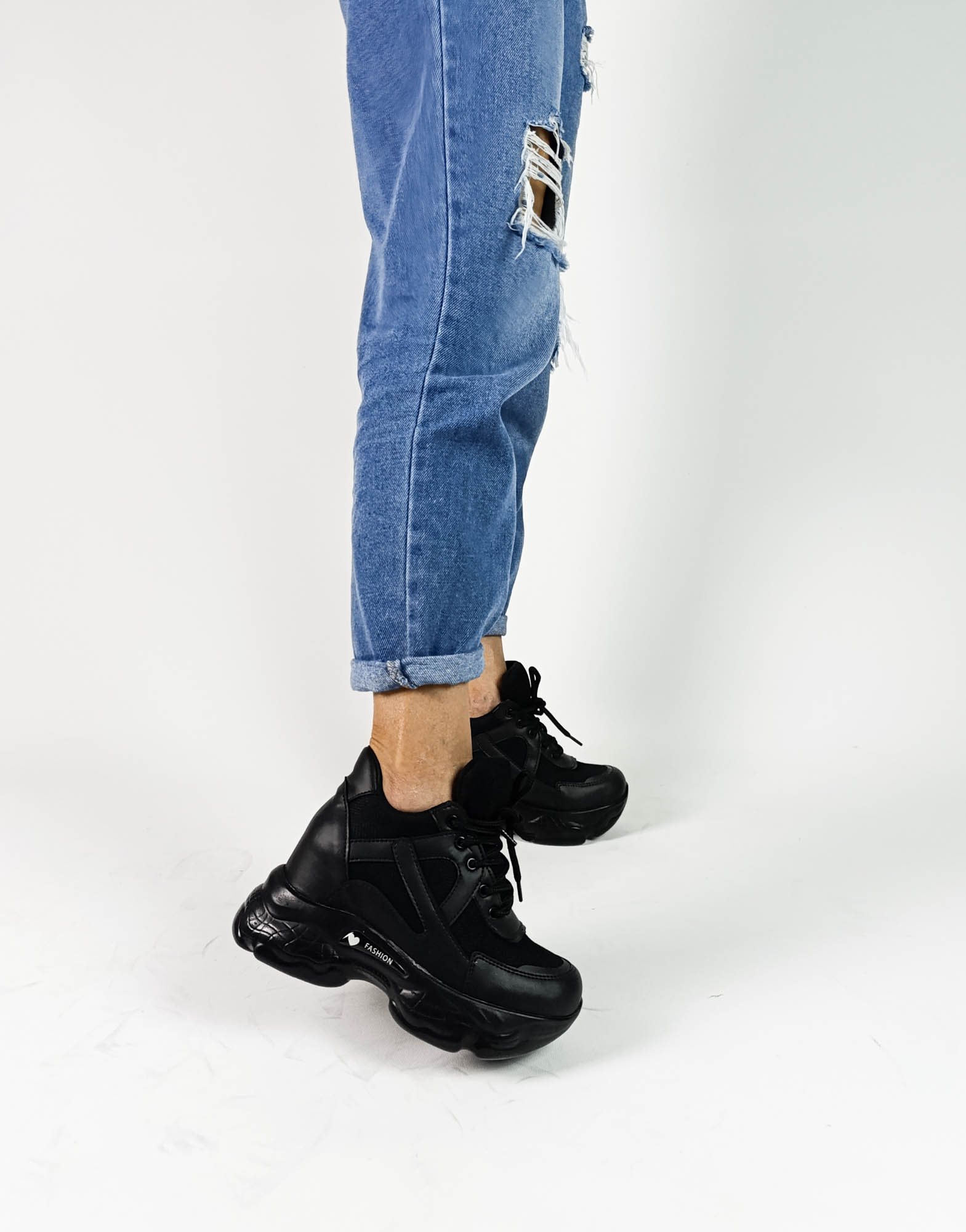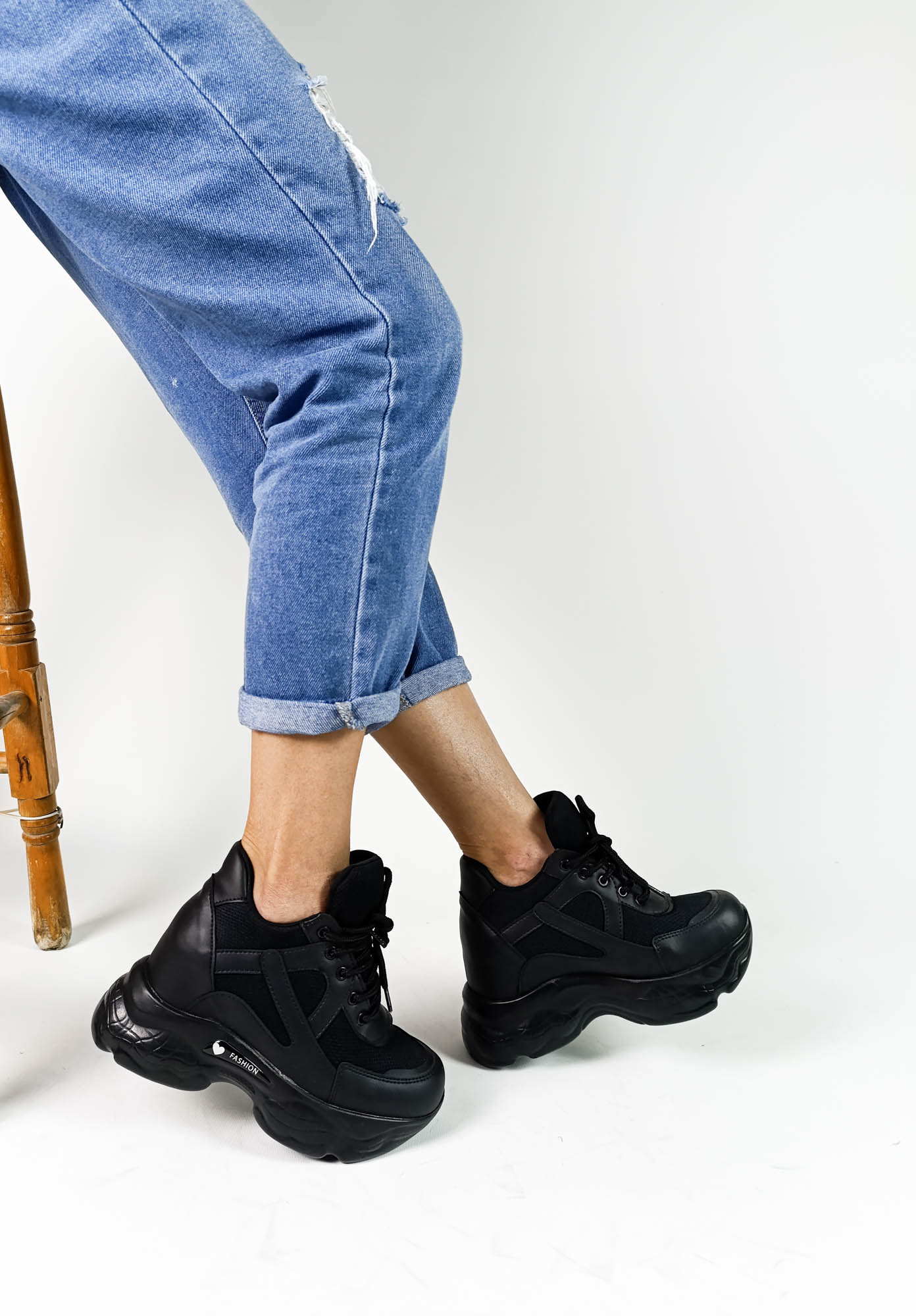 Siyah Renk İçten Gizli Topuk Bağcıklı Kadın Sneakers