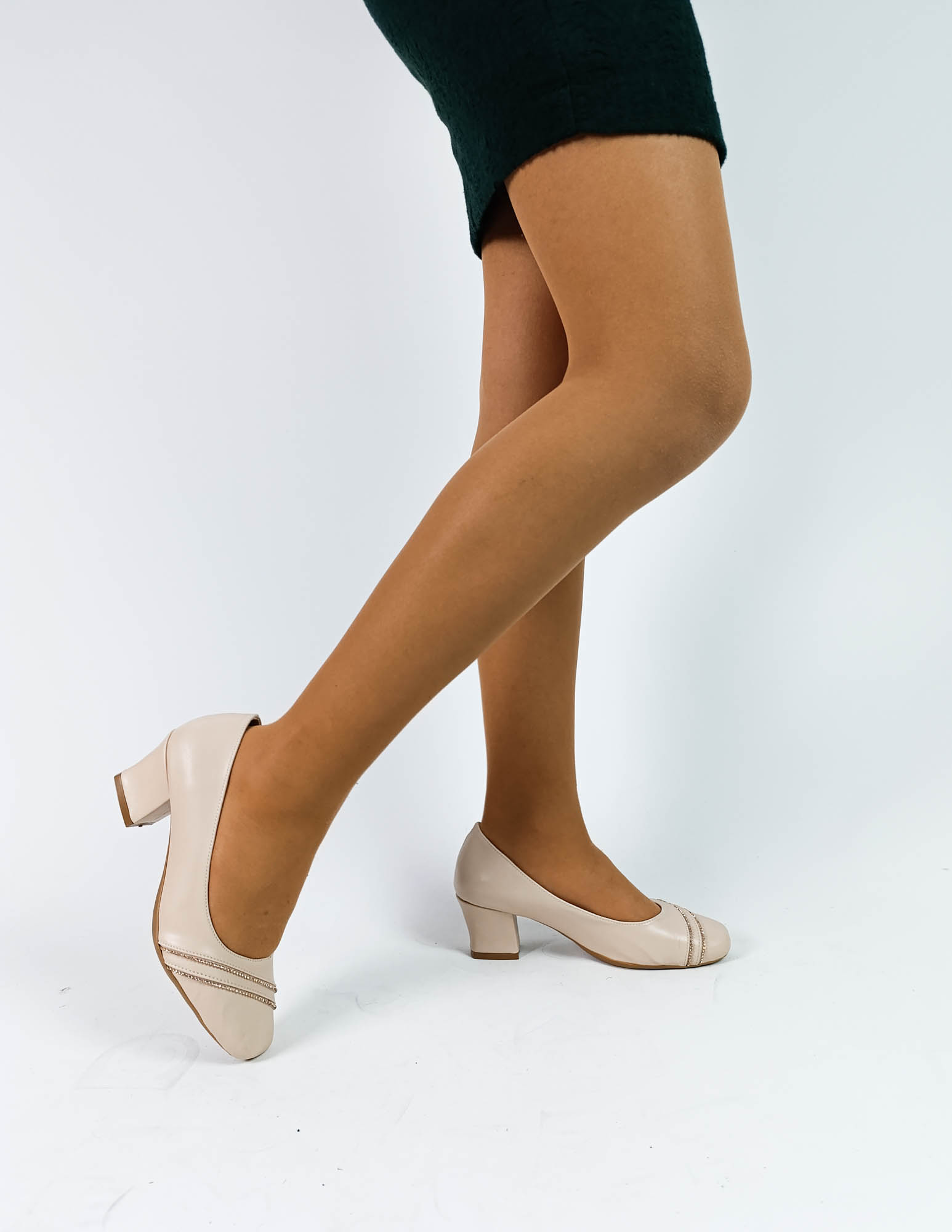 (White Line)Ten Renk Fincan Kısa Kalın Topuk Anne Topuklu Ayakkabı